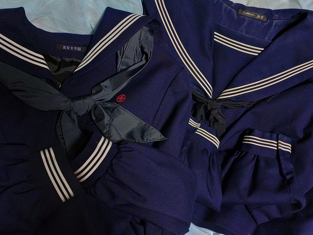 福岡県福岡市にあります私立筑紫女学園の冬セーラー服上下と夏セーラー服上下のセットです。 高校、中学それぞれの豪華セットです。 高校セーラーは校章刺繍付きでオプションのリボンタイ、カーディガンも付いております。 状態も上々ですが、夏セーラーの裾に絵の具染みがあります。冬ジャンパースカートに元々ベルトはついておりません。 中学セーラーは冬夏とも経年ものです。冬服は状態良好。夏服は背中に薄い擦れたような染みがあります。 また吊りスカートは指定外品です。おまけ品とご理解ください。吊り紐はボタン式で外せます。 その他状態は画像にてご判断下さいませ。 ◎高校冬セーラー 学校名タグ付き 毛70%ポリ30% 165A 肩幅40cm位 バスト周り92cm位 丈45cm位 袖丈53cm位 カフス周り18cm位 ◎冬ジャンパースカート 学校名タグ付き 毛70%ポリ30% ウエスト72cm位 総丈95cm位 スカート部長さ61p位 バスト周り84cm位 ◎高校夏セーラー 綿35%ポリ65% 学校名タグ付き 165A 肩幅40cm位 バスト周り92cm位 丈45cm位 袖口34cm位 ◎夏スカート 毛50%ポリ50% ウエスト68〜72cm位 丈55cm位 ◎カーディガン 素材不明 Lサイズ 丈64cm位 肩幅40cm位 袖丈60cm位 バスト周り104cm位 ◎中学冬セーラー 学生服のカク製 毛100% 肩幅40cm位 バスト周り92cm位 丈45cm位 袖丈53cm位 カフス周り18cm位 ◎冬ジャンパースカート 学校名タグ付き 毛100% ウエスト70cm位 総丈94cm位 スカート部長さ61p位 バスト周り84cm位 ◎中学夏セーラー 綿35%ポリ65% 学生服のカク製 肩幅40cm位 バスト周り92cm位 丈42cm位 袖口34cm位 ◎吊り紐付き夏スカート 毛50%ポリ50% ウエスト70〜72cm位 丈52cm位 吊り紐長さ80cm位(ボタンからボタンの間) 素人採寸ですので、若干の誤差はあります。ご理解のうえでの入札お願いします。 宅急便120サイズ。ヤマト運輸もしくは郵便局からの発送になります。 品名欄は「衣類」と記載して発送しますが、それ以外をご希望の方はお知らせ下さい。 よく商品説明欄を確認して頂いてからのご入札お願いします。不明な点はご質問下さいませ。 また落札されても取引されなかったり、連絡取り合ってもお支払いされなかったりする等のトラブルも多くなりました。 (新規の方はメッセージ欄にご連絡下さい) 申し訳ありませんが悪い評価のある方、新規の方のお取引は送料連絡後二日間以内にお支払い頂けない場合、キャンセルさせて頂きます。 (諸事情でお支払いが遅れる場合は、必ずメッセージ下さいませ) |