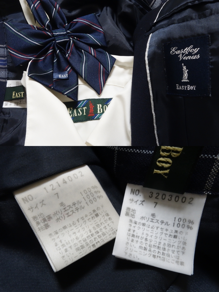 ★ご覧いただきありがとうございます★ 401◆(イーストボーイ/EASTBOY)ブレザー・裏地付チェックスカート・ブラウス・リボン◆7号 ☆専門業者のクリーニング済です(ドライクリーニング又は温水洗いですべて除菌加工済)☆ ☆清潔な状態の物をお送り致します☆ ※状態:特に目立つダメージやシミなどはございません。 サイズ等は下記をご参照下さい。 〈ブレザー〉 表記サイズ:7 着丈:59cm 肩幅:38.5cm 身幅:43cm 袖丈:58cm 素材:毛100% 〈ブラウス〉長袖 表記サイズ:9 着丈:61cm 肩幅:38cm 身幅:44cm 袖丈:58cm 素材:綿100% (スカート) 表記サイズ:7 ウエスト:61cm 丈:44cm ヒダ数:20 アジャスター:なし 素材:毛100% ※素人採寸になりますので多少の誤差はご容赦下さいませ。 ☆入札をお待ちしております♪ 【お支払いについて】 ・三井住友銀行(お振込み) ・「落札額+送料」をお振込みください。 ・お支払は3日以内にてお願い致します。 ※ご落札後3日以内に取引連絡及びご入金をお願い致します。3日経過後、何も連絡がない場合は落札者都合でキャンセルさせて頂きます。新規の方は24時間以内に連絡及びご入金がない場合は取り消しさせて頂きます。こちらからは催促の連絡は致しません。ご了承くださいませ。 【発送について】 ・兵庫県からの発送になります(ダンボール箱) ・ゆうパック:全国一律850円(60〜120サイズ) ・郵便局留め出来ます。ご希望の郵便局をご連絡ください。 ・120サイズのダンボール箱に収まる数量でしたら同梱可能です。 ・14時までにご入金の確認が出来ましたら当日発送致します。 ・品名は特にご指定がなければ「衣類」で発送いたします。 ・お取り置き、同梱発送可能です。お気軽にお申しつけ下さい。 ・お取り置きは最初の落札日より3日間まで承ります。 ※毎週木曜・日曜は発送業務をお休みさせて頂きますのでご了承ください。 |