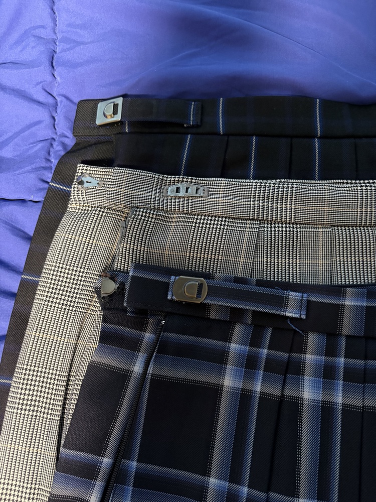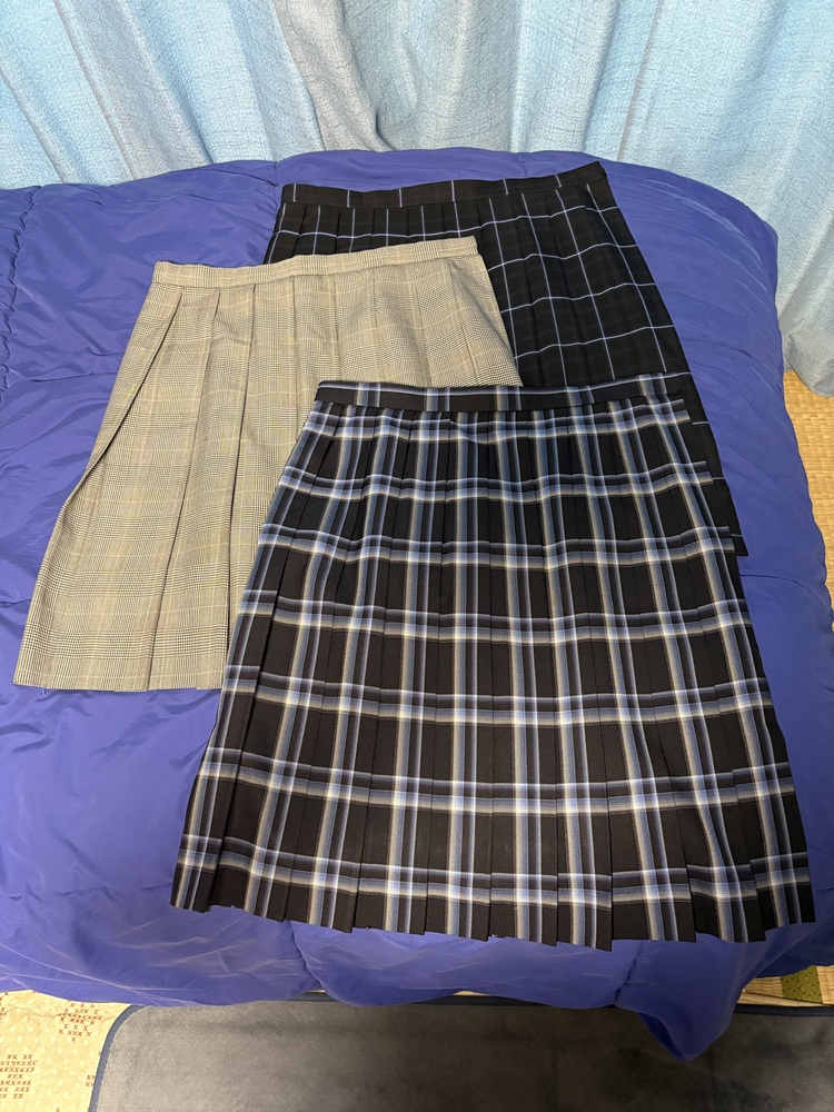 中学高校女子チェックスカート特大サイズ3枚セットです。 (平置き採寸) 濃紺ベースチェック ウエスト 42cm 着丈(ベルト下) 60cm 千鳥格子 ウエスト 40cm 着丈(ベルト下) 55cm 前見頃、右寄りにうっすら汚れが 有ります。 紺ベース水色ラインチェック ウエスト 40cm 着丈(ベルト下) 59cm 内側ポケットの所に記名が有ります。 ウエストサイズはそれぞれ 一番大きい位置で採寸してます。 何か質問等ありましたらご入札前に宜しくお願い致します。 |