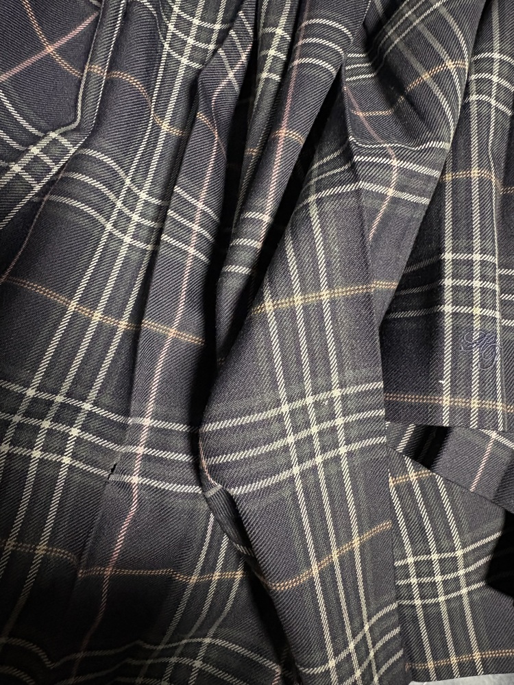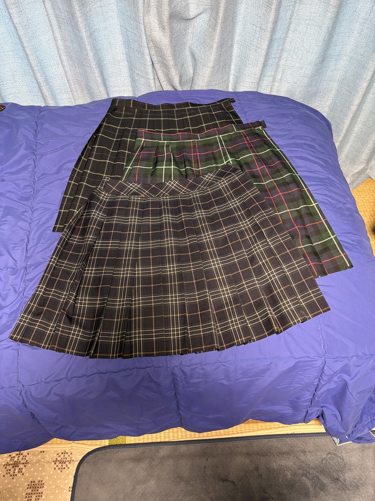 中学高校女子チェックスカート特大サイズ3枚セットです。 (平置き採寸) ベルトレススカート ウエスト 39cm 着丈(総丈) 53cm 黒地ベースチェック 紺ベースグリーンチェック それぞれ画像の表示を 参照して下さい。 ベルトレススカートの 前見頃の右下、襞山に小さく切れ目、前見頃の裾の方、何ヶ所か 細かな白いペンキ? のような汚れが有ります。 (画像参照) 何か質問等ありましたらご入札前に宜しくお願い致します。 |