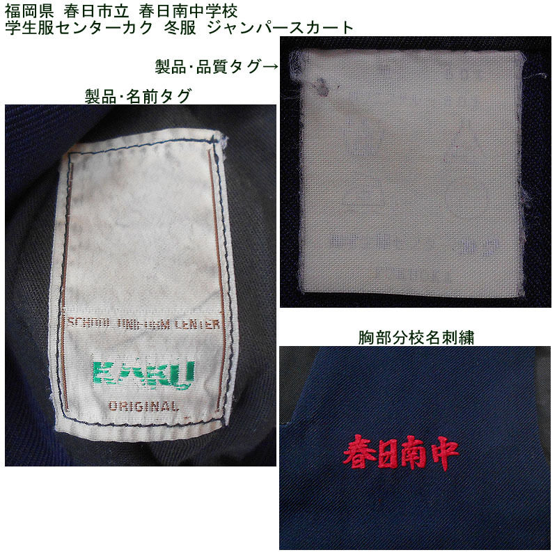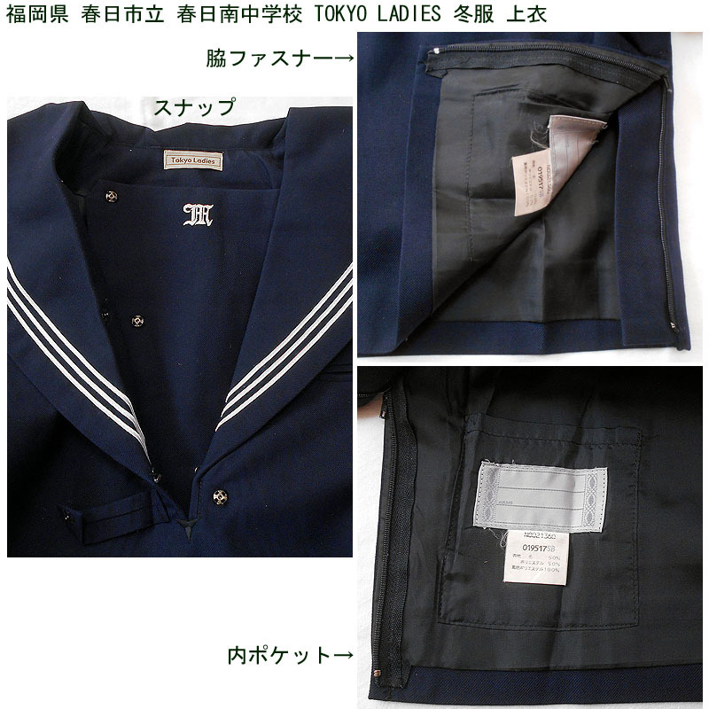 福岡県春日市立春日南中学校の冬服上衣とジャンパースカートの2点セットです。 紺スカーフ、ジャンパースカートのベルトはありません。 上衣はTOKYO LADIES製、ジャンパースカートは学生服センターカク製です。 大きめのセーラー服になります。 ●商品の説明 (1)上衣 メーカー:TOKYO LADIES 色/タイプ:紺地紺襟白3線長袖被り サイズ:- 肩幅:44p 胸周り:120p 袖丈:57p 着丈(首後ろから):47p 裾廻り:110cm (2)ジャンパースカート メーカー:学生服センターカク 色 :紺 サイズ :- ウエスト:80cm スカート丈(ベルト下):57cm 胸廻り:92cm 総丈(首後ろから):88.5cm 箱ひだ 24本 ※素人採寸ですので、多少の誤差はご了承ください。 ●注意事項 (1)ホームクリーニング済みです。 (2)実際に着用されていた制服ですので、シミ、汚れなどがあります。 (3)虫食い防止のため衣類の圧縮袋で保管していましたので、多少シワがあります。 (4)ノークレーム、ノーリターンでお願いいたします。 (5)スムーズな取引を心がけますが、発送は週末になります。 |