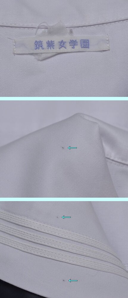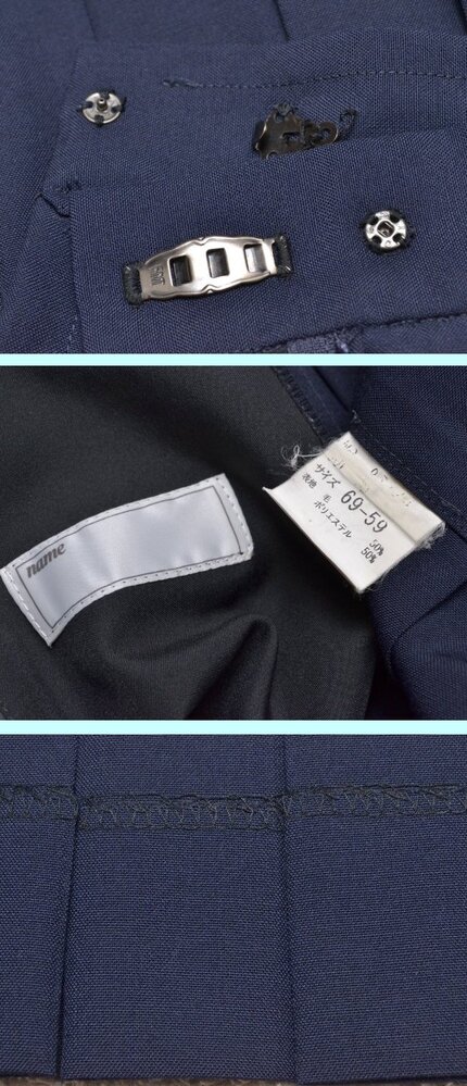 ▲fss-5489 筑紫女学園高校(旧、夏服)▲ ■■商品説明■■ ●セーラー服:肩幅39cm位 着丈42cm位 胸周88cm位 ●スカート:ウエスト69cm位 丈44cm位 24本前箱プリーツ ●スカーフ: ◎生地 セーラー服【表地】不明(タグ薄)【裏地】なし スカート【表地】ポリエステル50%毛50%【裏地】なし ◎メーカー セーラー服:不明 スカート:不明 ◎開き セーラー服:胸の部分のみ開 スカート:左ファスナー開 ◎その他 シミあり(画像参照) ◎所在:福岡市中央区 ■■発送について■■ ◇以下はお休みさせて頂きます。予めご了承下さい。 『土、日、祝祭日、8月12日〜16日 12月30日〜1月4日』 ◇基本、ヤマト運輸での発送です。 ■■注意事項■■ ◇気づいた点は記入するようしていますが、見落としで、ホックボタン不足、ホツレ、虫食い、シミ、その他欠陥がある場合があります。 ◇スカートの裏側に小さなシミ等があっても表からは見えませんので、基本的に記載は致しません。 ◇汚れの酷い場合や広範囲にある場合は裏側でも記載致します。気になる場合は入札前にご質問下さい。 (ポケットや裏地の破れは記載致します) ◇出品商品は中古品なので、新品のような完璧な商品をお探しの方は、入札をご遠慮頂き、ご理解下さる方のみ入札をお願い致します。 ◇サイズは一部を除き実寸です。素人が採寸しておりますので、多少の誤差はお許し下さい。 ◇スカート丈はウエストベルトを除いた部分を計測しております。(一部を除く) ◇制服は新品以外は全てドライ用洗濯済(毛100についてはドライクリーニング済)です。 ◇ノークレームでお願いします。 ◇評価に多数のマイナスがある方は入札を取り消させて頂く場合があります。 ◇保管場所の都合により質問の回答にはお時間を頂きますので、お早目にお願いします。 ◇他でも同商品を販売しております。場合によっては出品中でも取消が間に合わずに在庫が無い事があります。 ◇出品商品は、公開画像以外にも画像を残しております。 ◇その他、ご質問があればお気軽にどうぞ!! |