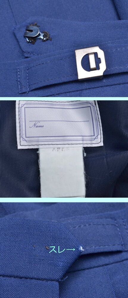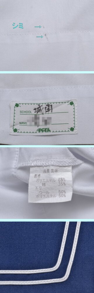 ▲fss-5539 下益城城南中学校(夏・大きめ)▲ ■■商品説明■■ ●セーラー服:5BL 肩幅42cm位 着丈46cm位 胸周98cm位 ●スカート:ウエスト71-78(表記75)cm位 丈45cm位 24本前箱プリーツ ●リボン: ◎生地 セーラー服【表地】ポリエステル65%綿35%【エリ】ポリエステル50%毛50%【裏地】なし スカート【表地】不明(タグ薄)【裏地】なし ◎メーカー セーラー服:タケモト スカート:不明 ◎開き セーラー服:左ファスナー開 スカート:左ファスナー開 ◎その他 シミ、キズ、スレあり(画像参照) ◎所在:熊本市南区 ■■発送について■■ ◇以下はお休みさせて頂きます。予めご了承下さい。 『土、日、祝祭日、8月12日〜16日 12月30日〜1月4日』 ◇基本、ヤマト運輸での発送です。 ■■注意事項■■ ◇気づいた点は記入するようしていますが、見落としで、ホックボタン不足、ホツレ、虫食い、シミ、その他欠陥がある場合があります。 ◇スカートの裏側に小さなシミ等があっても表からは見えませんので、基本的に記載は致しません。 ◇汚れの酷い場合や広範囲にある場合は裏側でも記載致します。気になる場合は入札前にご質問下さい。 (ポケットや裏地の破れは記載致します) ◇出品商品は中古品なので、新品のような完璧な商品をお探しの方は、入札をご遠慮頂き、ご理解下さる方のみ入札をお願い致します。 ◇サイズは一部を除き実寸です。素人が採寸しておりますので、多少の誤差はお許し下さい。 ◇スカート丈はウエストベルトを除いた部分を計測しております。(一部を除く) ◇制服は新品以外は全てドライ用洗濯済(毛100についてはドライクリーニング済)です。 ◇ノークレームでお願いします。 ◇評価に多数のマイナスがある方は入札を取り消させて頂く場合があります。 ◇保管場所の都合により質問の回答にはお時間を頂きますので、お早目にお願いします。 ◇他でも同商品を販売しております。場合によっては出品中でも取消が間に合わずに在庫が無い事があります。 ◇出品商品は、公開画像以外にも画像を残しております。 ◇その他、ご質問があればお気軽にどうぞ!! |