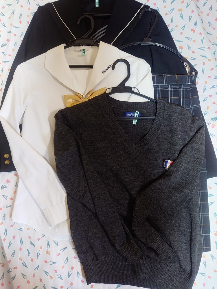 横浜高校女子制服および付属品計5点まとめて (セーラージャケット・ブラウス・スカート・セーター・金色のリボン) 平置き測定寸法は下記のとおりです。(単位はcm) セーラージャケット(タグ表記L) 身幅47 着丈63 袖丈57 肩幅39 スカート (タグ表記ウエスト66・丈51) ウエスト幅32(アジャスター中央にして) スカート丈51(ベルト下から裾まで) ブラウス(タグ表記消えて不明) 身幅44.5 着丈61.5 袖丈56 肩幅38 セーター(タグ表記М) 身幅47 着丈58 袖丈54 肩幅42.5 金色のリボンは株式会社トンボの品質表示タグが付いています。 いずれも当方のコレクションの整理目的での出品です。 お譲りする品は画像のとおりです。 衣料品(リボン以外)はすべて業者クリーニング済み後 での出品です特に目立った損傷は無い綺麗な状態では ありますが中古品の特性上細かい点(シミなど)を気になさる 方はご遠慮ください。 合服は白なので多少の黄ばみはあります。 品物はたたんで発送していますのでたたみ跡が出ます。 落札代金+送料は銀行振り込みでお願いします。 ヤマト運輸100サイズでの発送を予定していますが サイズ変更する場合がございます。 新規入札される場合は、コメント欄に落札意思の表明を お願いします。コメント欄に落札意思表明なく入札、 落札されても当方で削除いたします。イタズラ入札 防止のためご理解ください。 |
