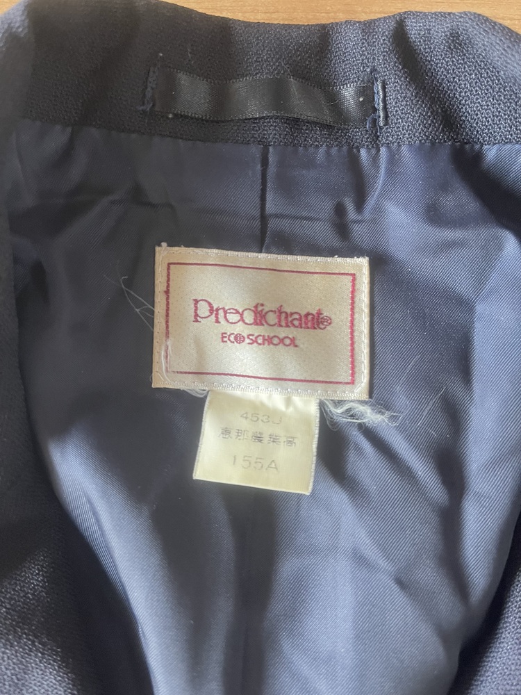 岐阜県立恵那農業高校のブレザーと夏スカートです。 ブレザーに染みと右肘のあたりに穴が空いています。 サイズはブレザーが幅44センチ、丈58センチ。 スカートはウエスト63センチ、丈31センチです。 衣類表記にて発送致します。 郵便局留め、日時指定可能です。 |