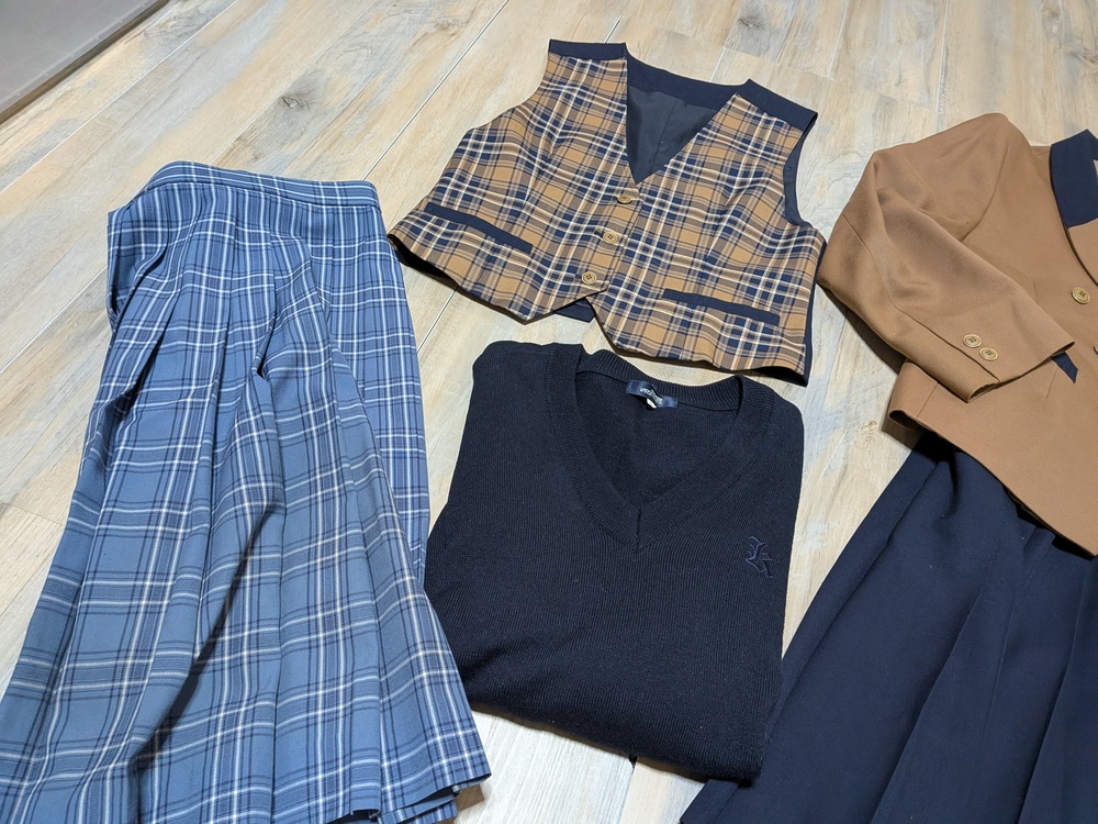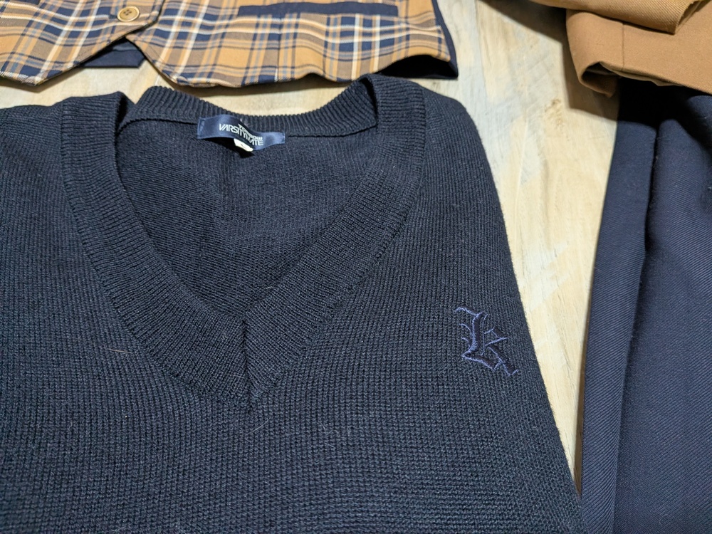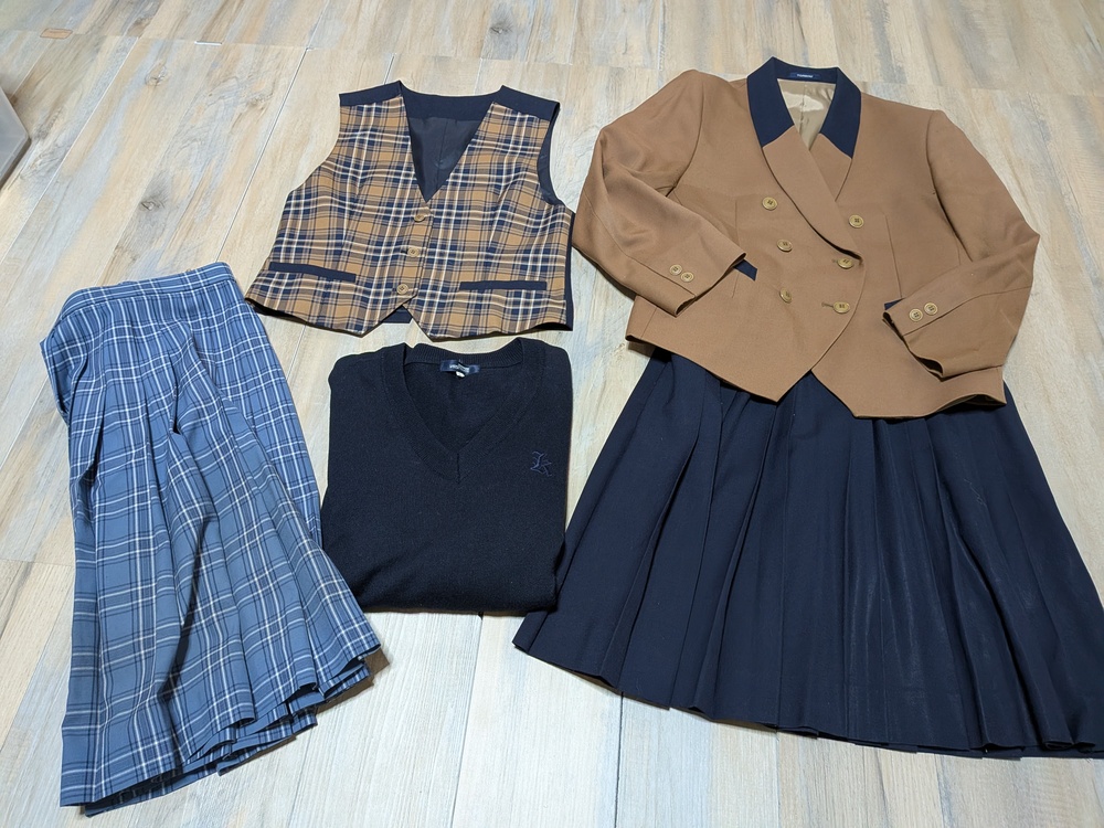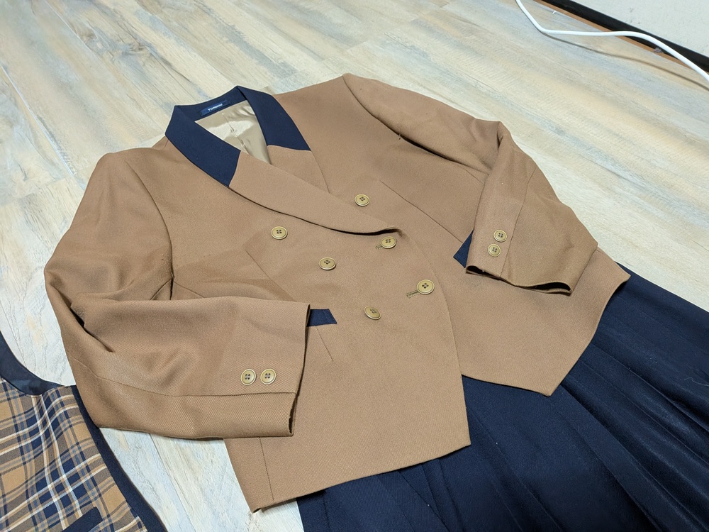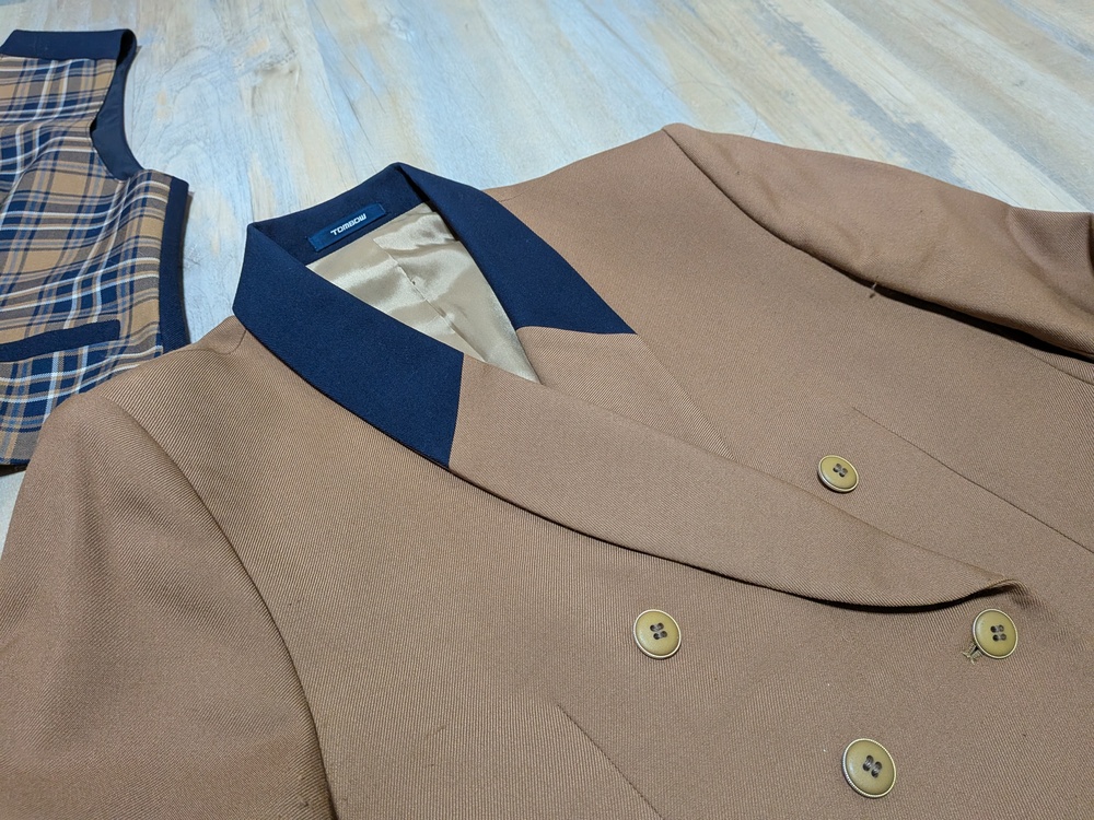 全体的に綺麗です。 サイズL ジャケット L ベストL Vネックニット ロゴ刺繍 L 厚手スカート w72. 丈57 薄手スカート w72 丈57 |