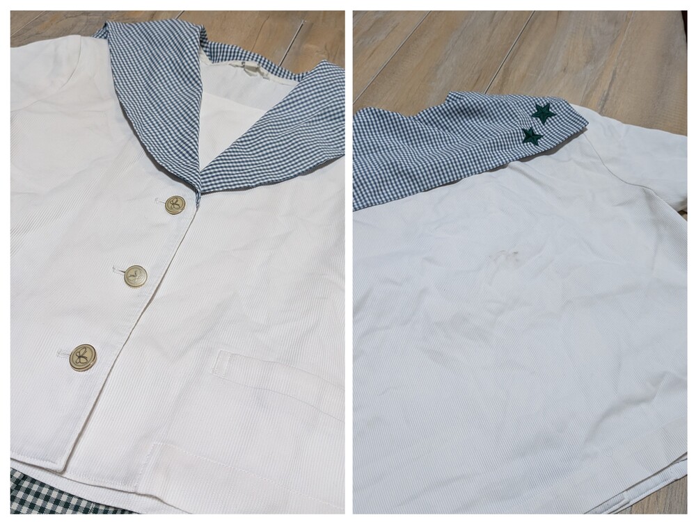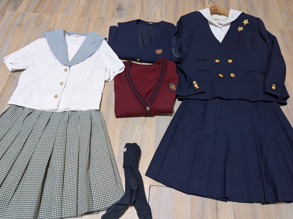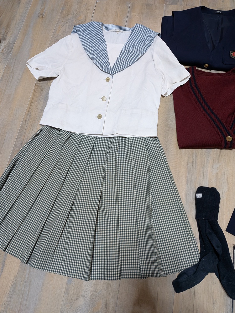 ジャケット 165 良品級 長袖ブラウス 165 首周り黄ばみあり ベスト 165 良品級 厚手スカート w69 丈50 良品級 ニットカーディガン M 美品 夏セーラーブラウス 165 多少の使用感あり 薄手スカート w69 丈50 良品級 靴下 |