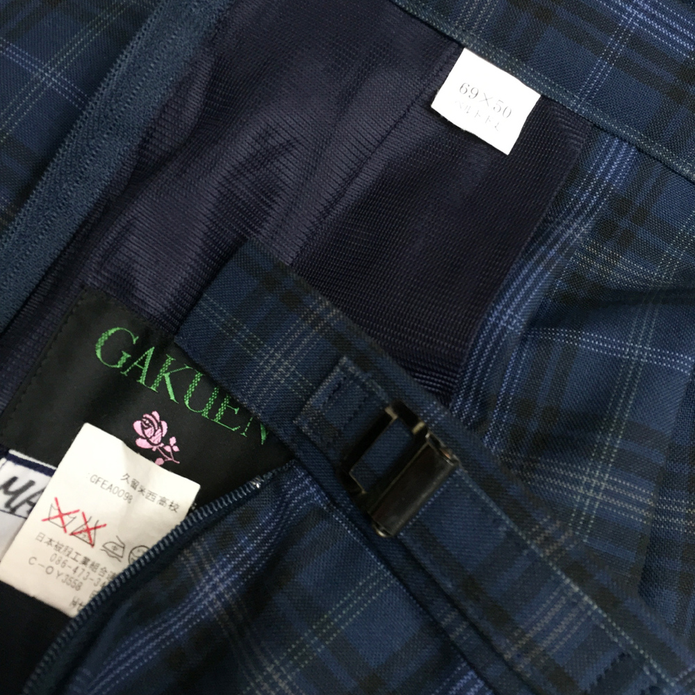 c■美品 大きめW69L50■東京都立久留米西高等学校 人気チェック柄 夏スカート■濃紺など