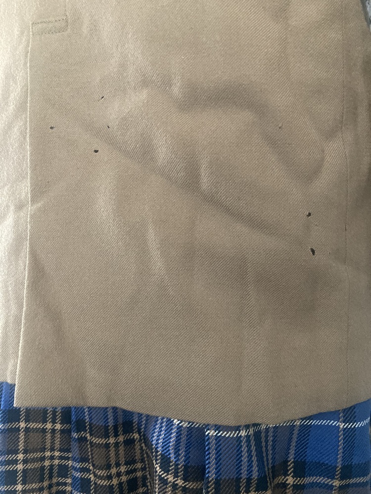 岡山学芸館 ブレザー ・サイズ160A 平置きで 身幅 約50p 着丈 約61p 肩幅 約41p 袖丈 約54p 使用感ございます事ご容赦お願い申し上げます。 また、後ろ脇下や裾の方に画像の通り穴あき箇所があります。 スカート ・ウエスト 63p ・スカート丈 51p *表示に記載 *使用感ございますが、目立ったダメージは特にございません。 ブラウスは指定外品です。 (おまけ品として提供申し上げます) ・肩幅 約41p ネクタイ指定品 各々の素人採寸ですので誤差ご容赦お願い申し上げます。 ノークレーム、ノーリターンでお願い申し上げます。 |