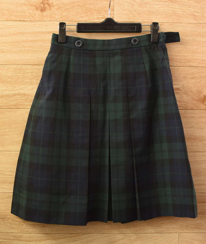 c■良好■ISETAN伊勢丹 女子学生制服 人気チェック柄 夏スカートW66L51■濃紺・緑 不明