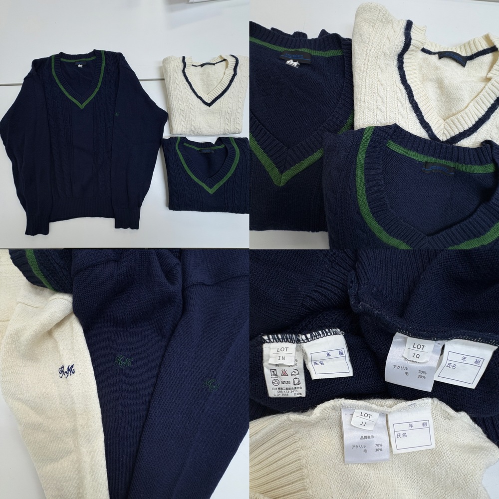 当店の商品をご覧いただきありがとうございます。 ■商品説明■ ・ブレザー サイズ不明 実寸(平置き採寸) 着丈:約52cm 身幅:約48cm ・スカート(冬 夏 各1点) サイズ不明 実寸(平置き採寸) ウエスト:約34cm スカート丈:約48cm 夏スカートのウエストは細目に調整されています。 ・長袖シャツ2点 Mサイズ相当 半袖シャツと同じサイズ感です。 ・半袖シャツ Mサイズ ・ニット(紺2点 白1点) 紺 LLサイズ 白 実寸(平置き採寸) 着丈:約50cm 身幅:約45cm 袖部分汚れあり。 ・ニットベスト 実寸(平置き採寸) 着丈:約51cm 身幅:約45cm ・ローファー 24.0cm ・リボン2種 未クリーニング、現状品です。 ■送料■ 全国一律1,200円 ■注意事項■ ・当店の品物はすべて一般のお客様から買取りした品物です。使用期間、使用状況などの詳細な情報についてはお答えできない場合がございます。 ・個人情報などの記入があるお品物については、記載部分をペンで塗りつぶしている場合がございます。 ・出品物、付属品は画像に写っているものが全てです。 ・発送方法は佐川急便のみです。発送方法の変更はできません。営業所留めの対応可能です。 ・落札後一週間以内のご入金をお願いいたします。期限内にご入金が確認できない場合は、落札者様都合によりお取引のキャンセルを行います。 ・同梱発送は同日落札分のみご対応いたします。 |
