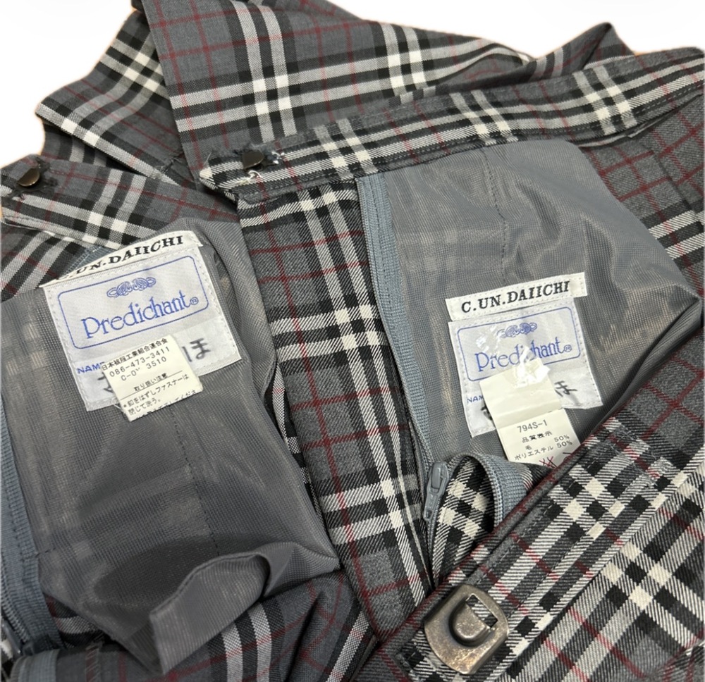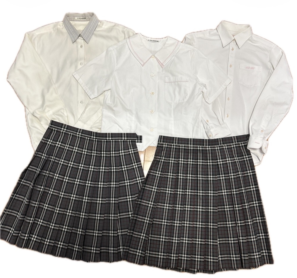 中部大学第一高校の制服です。 KANKO長袖ブラウス 155サイズ 長袖ブラウス 165〜170相当 半袖ブラウス 160サイズ 冬スカート W72. L51 夏スカート W72. L51 スカートにはフルネームあり 新旧不明です。 中古品ですので神経質な方ご遠慮ください。 |