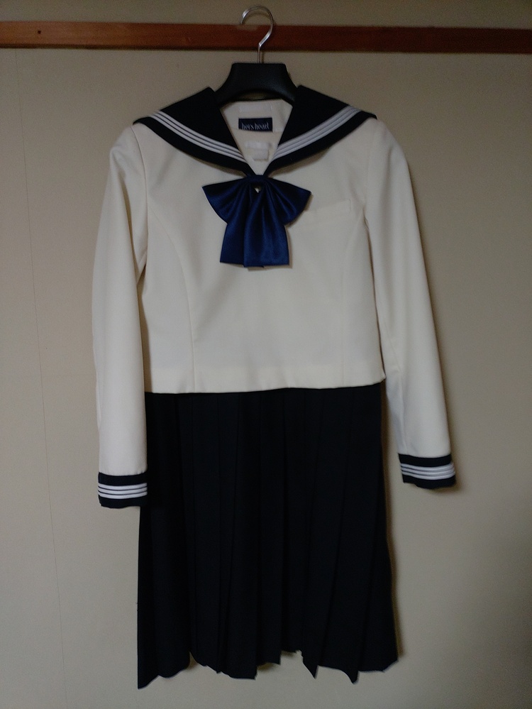 博多女子高校冬セーラー服になります。サイズは平置きで上衣が肩幅38,身幅46,袖丈55ジャンパースカートウエスト40,身幅42センチになります。 |