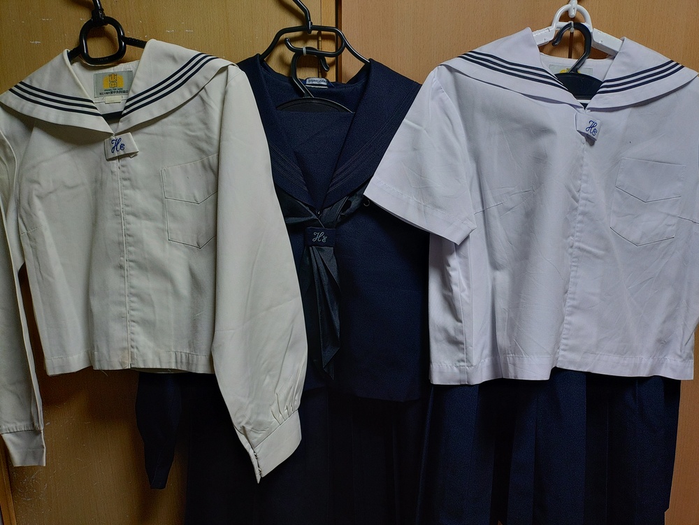 滋賀県近江八幡市にあります市立八幡東中学校の冬セーラー服上下と夏セーラー服上下、中間服セーラーのセットです。 スクールタイガー製。保管期間が長いもので状態につきましては画像にてご判断下さい。 冬服の状態は破れ等もなく綺麗ですが経年感があります。前開きポリエステル100% スカートのホックは独特な形をしております。 夏セーラー、中間セーラーはたたみ皺や一部シミ等があります。画像にてご判断下さいませ。 ◎冬セーラー スクールタイガー ポリ100% 肩幅40cm位 バスト周り92cm位 丈47cm位 袖丈52cm位 カフス周り17cm位 ◎冬スカート スクールタイガー ポリ100% ウエスト63cm位 丈73cm位 ◎夏セーラー 綿35%ポリ65% 肩幅40cm位 バスト周り84cm位 丈48cm位 ◎夏スカート ポリ100% ウエスト60cm位 丈63cm位 ◎中間服(長袖)セーラー 肩幅39cm位 バスト周り92cm位 丈44cm位 袖丈52cm位 カフス周り17cm位 素人採寸ですので、若干の誤差はあります。ご理解のうえでの入札お願いします。 宅急便100サイズ。ヤマト運輸もしくは郵便局からの発送になります。 品名欄は「衣類」と記載して発送しますが、それ以外をご希望の方はお知らせ下さい。 よく商品説明欄を確認して頂いてからのご入札お願いします。不明な点はご質問下さいませ。 また落札されても取引されなかったり、連絡取り合ってもお支払いされなかったりする等のトラブルも多くなりました。 (新規の方はメッセージ欄にご連絡下さい) 申し訳ありませんが悪い評価のある方、新規の方のお取引は送料連絡後二日間以内にお支払い頂けない場合、キャンセルさせて頂きます。 (諸事情でお支払いが遅れる場合は、必ずメッセージ下さいませ) |