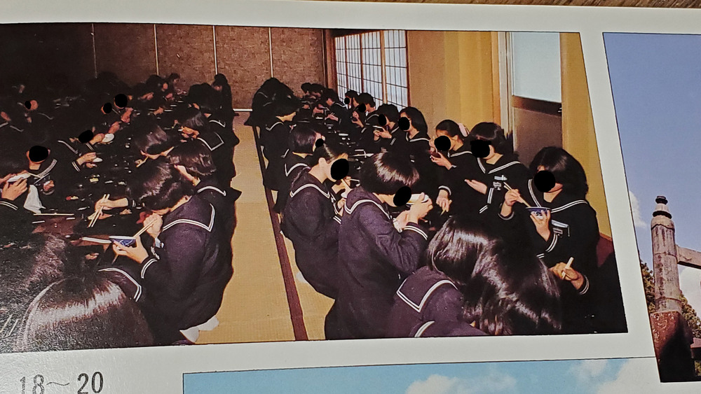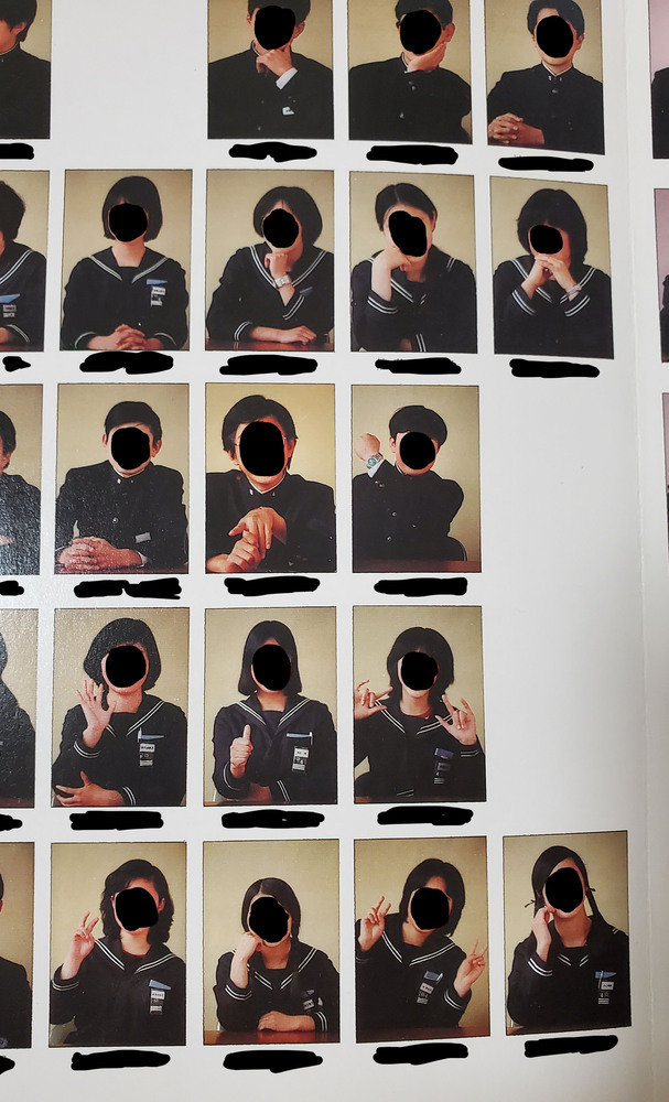 1クラス44人程度、5クラス(220人程度)です。 巻末の年表を除いて、ほとんどのページがカラー印刷です。 校内陸上大会の様子、バレー部・バドミントン部・新体操部などの部活動の様子や 修学旅行の写真などが掲載されています。 状態は、カバーに汚れがありますが、本体や中身は綺麗です。 |