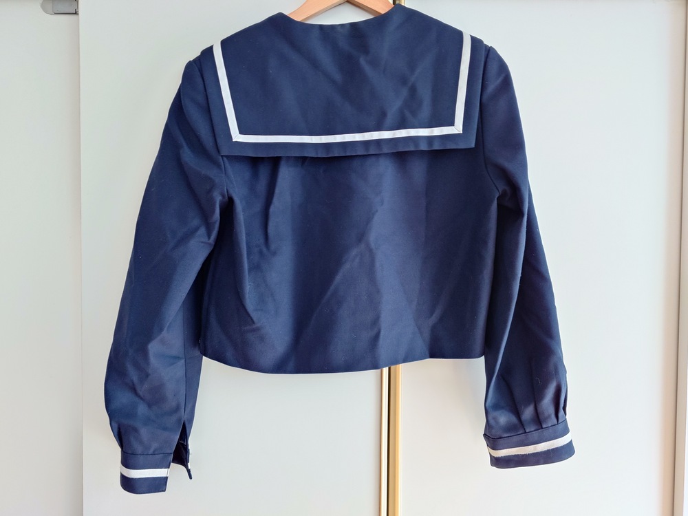 知り合いの子からの委託出品です。 お譲りするのは以下の商品で、ホームクリーニング済みです。 在校生の方、クリーニング時の予備等にお使いいただけるかと思います。 内訳は下記のとおりです。(サイズは素人採寸のため参考程度にお願い致します) ・冬セーラー服 肩幅42、 袖丈58、 着丈47 ・冬スカート ウエスト66、丈57 3年間使用されたものですので多少のシミ汚れがありますが、状態は良好です。 商品の性質上、ノークレーム・ノーリターンでお願いします。 |