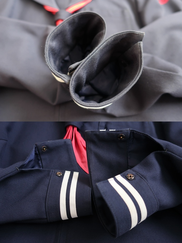 冬セーラー サイズ表記:170A 実寸(肩41、胸100、袖60、着丈48) 状態:胸ポケットに縦の破れ。身頃生地は破れ無し。(写真3参照)袖スナップボタン左右1組無し。白線薄汚れ。ホームクリーニング済。 生地:ウール50%、ポリ50% 販売:OKAJIMA ネクタイ:学校指定品(スナップボタン留め) 冬スカート サイズ表記:タグ切り取り (実寸:W64〜71、ベルト下L50) 状態:ウエストアジャスターレール割れ・欠損・解れ。(写真9参照)裾まつり縫い少し解れ。生地に穴や大きな擦れ無し。ホームクリーニング済。 生地表記:タグ切り取り (おそらくウール100%若しくはウール50%、ポリ50%) 販売:OKAJIMA お取引:ヤフオクを利用しての匿名取引です。ヤフオク手数料は当方が負担いたします。 決済方法:ヤフーかんたん決済 お取引の流れ:制服市場で落札 ー 落札者様から取引連絡 ー ヤフオクに出品・連絡 ー 即決落札・代金お支払い ー 発送 ー 受け取り連絡・評価 です。 送料:落札者様負担です。お手軽配送60サイズ(小さく畳んでビニール袋+紙袋梱包)750円の予定です。他の品物と同梱できます。 |