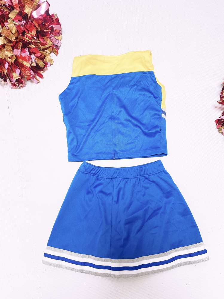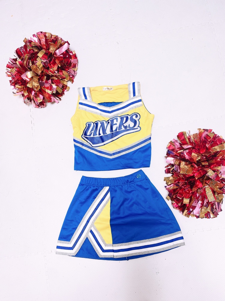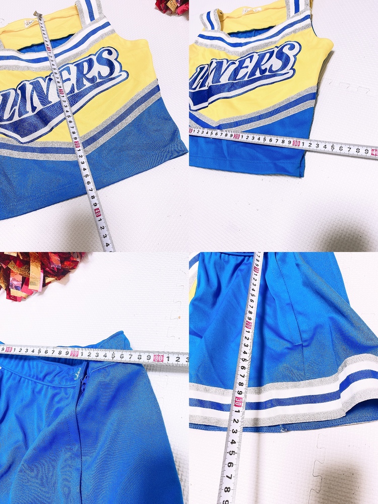 サイズ S 肩ひもを短く、上着サイドを細く 縫修しています 詳しいサイズは写真を見てください コスプレ衣装でなくチアダンスユニフォーム専門店のものです ポンポンは付きません