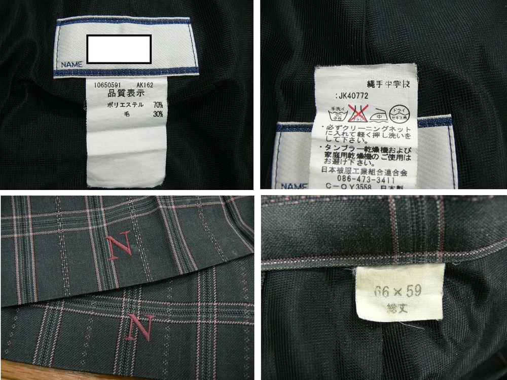 クレジットカードが使えるようになりました! カード利用に関わる手数料はこちらで負担しますので 落札者様には通常通り、「商品代+送料」のみ決済頂ければ結構です。 最近新規のいたずら入札が度を超えてきたので 今後新規IDの入札があった場合、 気付いた時点で無条件で削除します! もしオークション終了後に新規IDの落札が判明したときは 落札者都合にて落札の取り消しをしますので 絶対に新規IDの人は入札しないでください。 お支払はご落札後5日以内にてお願い致します。 連絡無しで過ぎた場合、落札を取り消しいたしますのでご注意ください。 なお、新規の人が最高入札者となっている場合 こちらが取り消すまで入札しないで(新規の人と争わないで)下さい。 何回か争ってしまうと、その後に新規を取り消しても争う前の価格にはならず、 取り消す1つ前の価格になってしまうため 新規の人に吊り上げられたかたちになってしまいます。 もしその状態で落札されても当方では争う前の価格に下げることはできません。 その時点での落札額で取引していただきます。 なので絶対に新規IDの人がトップになっているときは値段を上げないで下さい。 あと、それと同様に自動入札での入札もしないことを推奨します。 例えば現在価格が1000円のときに10000円までなら出せるというときに 予め10000円を入札すると表面上は1100円となりますが 間に新規の人が9900円を入札すると一気に10000円まで跳ね上がり 結果吊り上げられたかたちになってしまいます。 そのため自動入札システムもお勧めしません ご覧いただきありがとうございます 繩手中学校 *商品説明* ◆紺系ブレザー1枚 チェックの冬夏スカート各1枚 指定外品の長袖ブラウス1枚 ◆ブレザーワッペン ◆スカート刺しゅう *サイズ* 《ブレザー》165A 肩幅 40cm 身幅 49cm 着丈 61cm 袖丈 57cm 《冬スカート》 ウエスト 60〜66cm 丈 58cm 《夏スカート》 ウエスト 60〜66cm 丈 58cm 《長袖ブラウス》 *状態* ランク B *発送* 80サイズの段ボールで大阪よりお送りします。 品名『衣類』と記載します。 ヤマト宅急便 全サイズ一律850円 (北海道・沖縄を除く) 【北海道】 60サイズ 1700円 80サイズ 2000円 【沖 縄】 60サイズ 1260円 80サイズ 1870円 ☆発送は火・水・金です。 月・木・土・日・祝日は発送お休みです。 ☆火・水・金曜日はお昼12時までに 入金を確認出来ましたら その日にお送りいたします。 それ以降の時間のものは翌発送日になります。 ☆センター止め可能です。 ご希望の際はセンターコードをお知らせください。 ☆お時間帯指定可能です。 @午前中A14〜16時B16〜18時 C18〜20時D19〜21時 ☆同梱発送可能です。 取引メッセージでご連絡お願いします。 *注意事項* ◎落札後24時間以内にご連絡がとれる方の ご入札お待ちしております♪ ◎ノークレーム・ノーキャンセル・ ノーリターンでお願いします。 ◎3年間毎日着用していると起こりうるであろう 記載するほどでもない汚れなどある場合もありますこと ご了承ください。 記載するほどでもないの程度は個人差があることも ご承知おきください。 ◎お取り置きは最初の商品の落札日を含め5日以内と させていただきます。 ◎お支払いは三井住友銀行指定口座へ 『落札額+上記送料』お振込みお願いいたします。 クレジット払いの場合、別途URLご案内しますので、 そちらよりお手続きお願いします。 ■メッセージ・ご質問などへのお返事 火・水・金の10時〜14時 ■発送 火・水・金 |