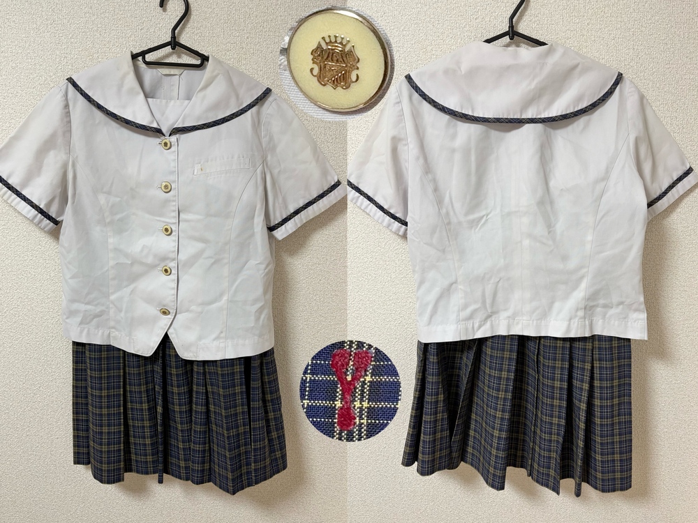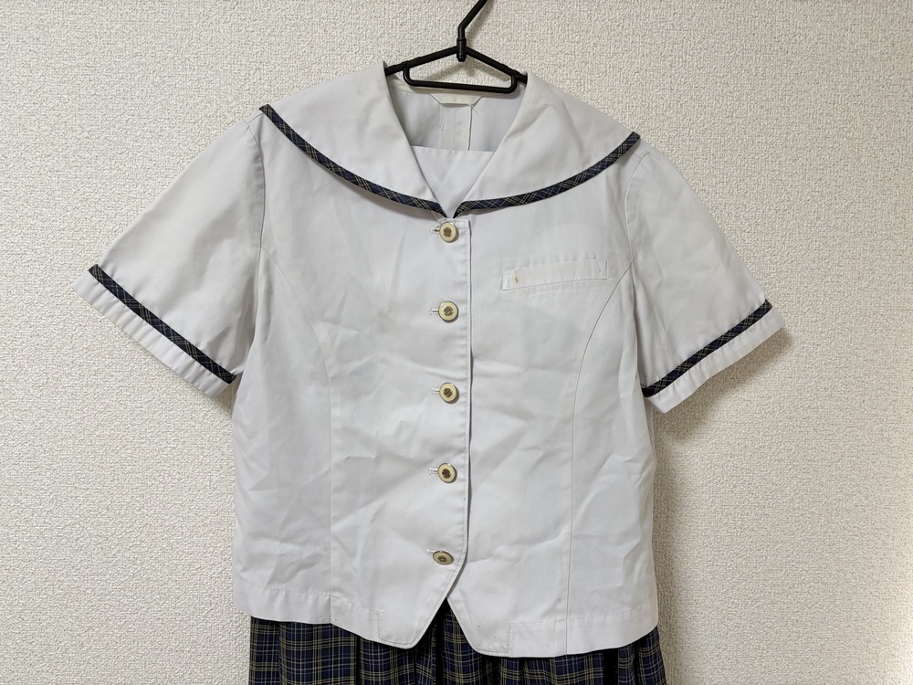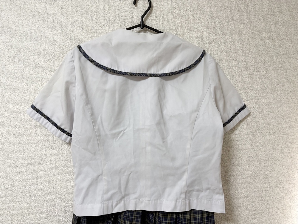 *八女学院中学校の冬服セットも出品しています。 ・セーラーシャツ 肩幅40 身幅49 着丈49 袖丈21 ・チェックスカート ウエスト70 総丈55 以上2点です。 ※素人採寸のため、多少の誤差はご了承ください。 ◇◆状態◇◆