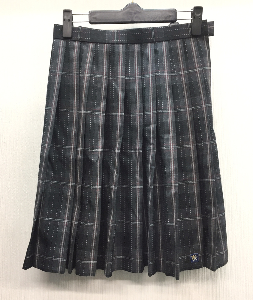 • c■良好■校章刺繍付き女子学生制服 人気チェック柄 冬スカーW63L54■黒など 不明