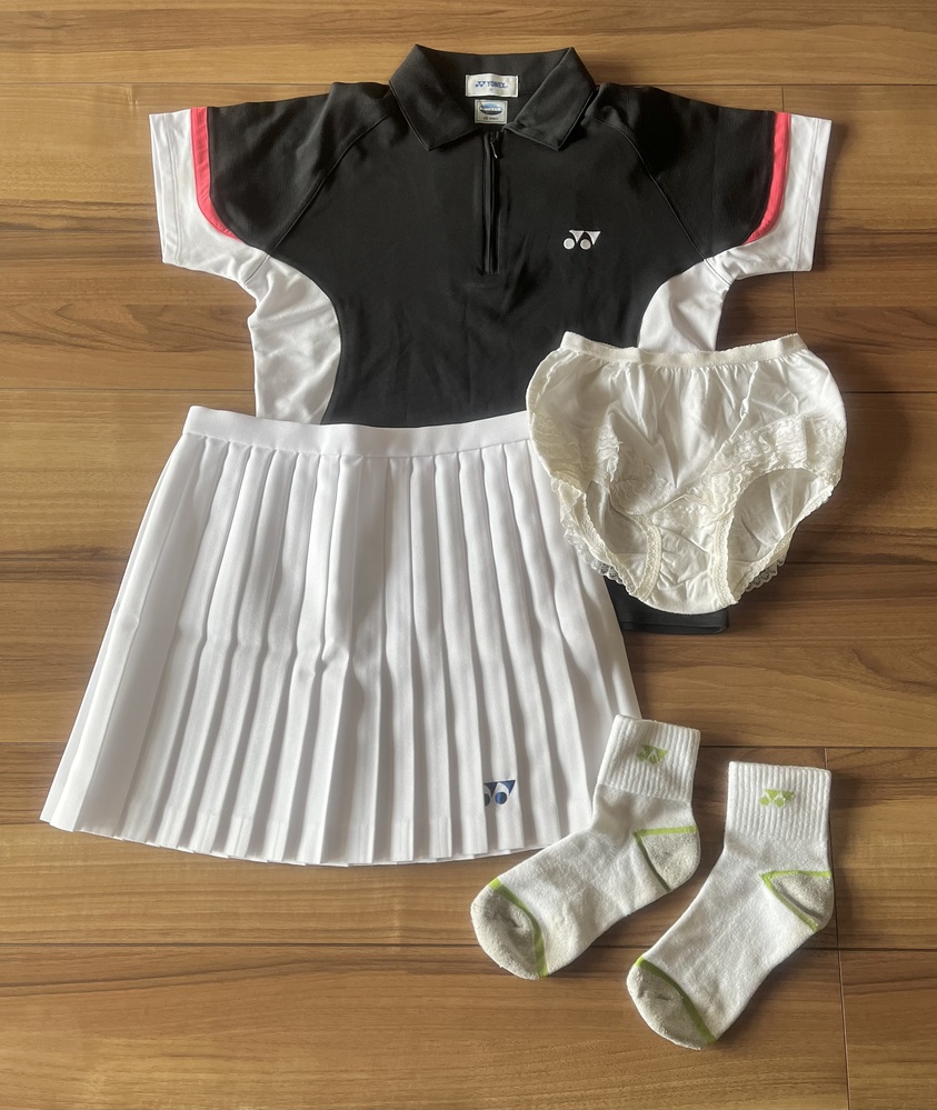 セット内容はウェア、スコート、ソックス、アンスコの4点です。 サイズはウェアがM、スコートはウエスト64センチ、丈35センチです。 衣類表記にて発送致します。 郵便局留め、日時指定可能です。 |