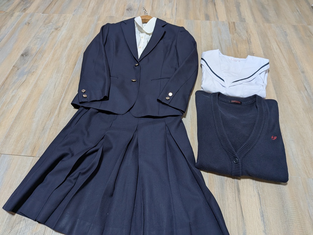 やや使用感あり サイズL. 半袖セーラーブラウスL 長袖ブラウス LL 襟黄ばみあり ブレザー 170 多少の使用感あり スカート w69 丈53 |