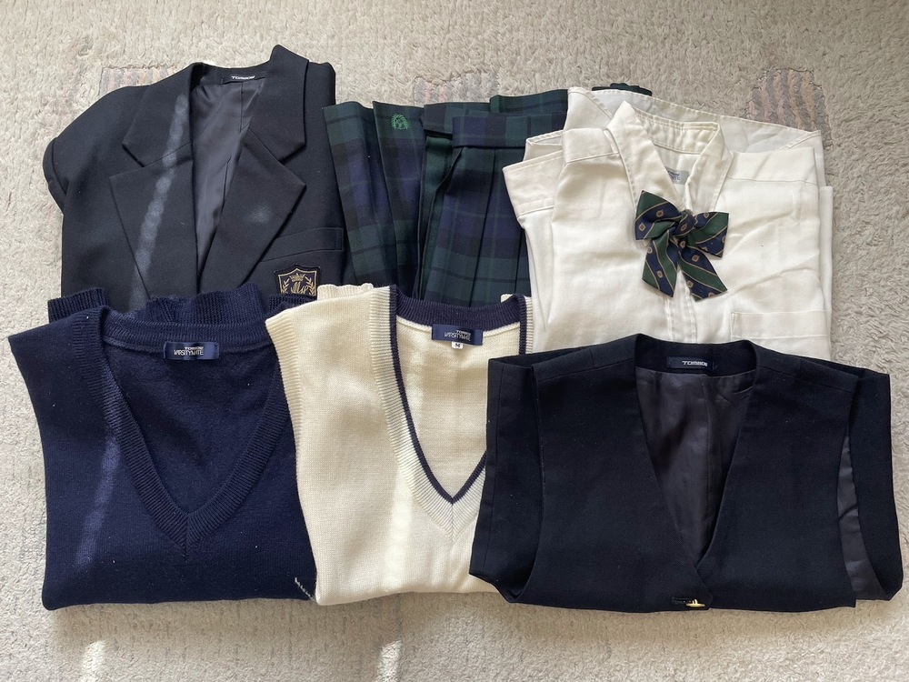 瑞穂高校の冬セットになります。 【 ブレザー 】 サイズ:S 肩幅:39cm 身幅:45cm 着丈:60cm 袖丈:53cm 【 ベスト 】 サイズ:S 肩幅:30cm 身幅:39cm 着丈:44cm 【 ブラウス 長袖 】 サイズ:不明 肩幅:41cm 身幅:52cm 着丈:63cm 袖丈:54cm 【 ブラウス 半袖 】 サイズ:M 肩幅:41cm 身幅:45cm 着丈:63cm 袖丈:23cm 【 キュロットスカート 冬用 】 サイズ:不明 ウエスト:平置き 33cm スカート丈:54cm 【 ニットセーター 】 サイズ:不明 肩幅:46cm 身幅:53cm 着丈:50cm 袖丈:53cm 【 ニットベスト 】 サイズ:M 肩幅:35cm 身幅:46cm 着丈:54cm 【 リボン 】 全体的にそれなりの使用感はありますが破れ等は有りません。 保管の際にできたシワがあります。 画像の物がすべてになります。 発送方法はヤマト宅急便の元払いにて発送します。 その他の発送方法は一切対応できません。 ノークレーム、ノーリターン、ノーキャンセルでお願いできる方よろしくお願いします。 |