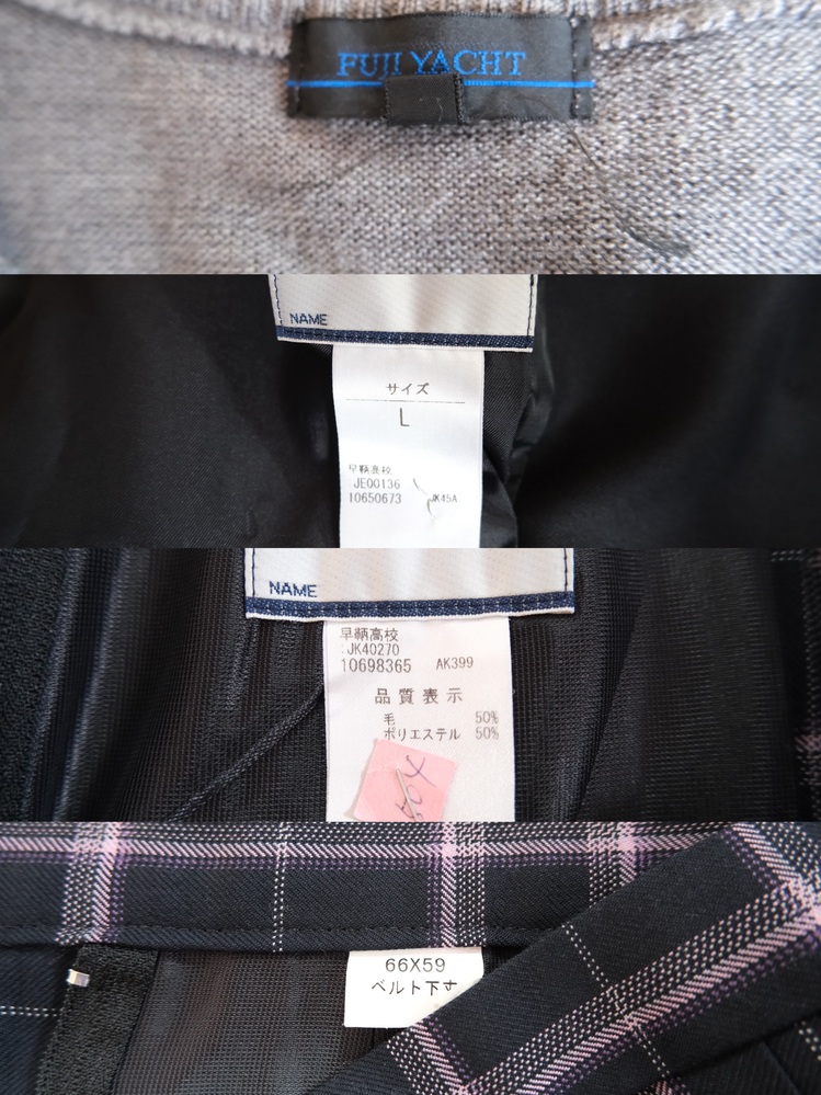 *ブレザー 表記サイズ:L 肩幅42身幅49着丈65袖丈57 *ニット 表記サイズ:L *シャツ 表記サイズ:LL 肩幅42 身幅51 着丈58 新品(未使用) *スカート ウエスト66 スカート丈59 *靴下 新品(未使用) * 支払いはPayPalのみとなっており、他の支払い方法は対応しておりません。PayPalの手数料は当方が負担いたします サイズは素人による採寸のため、多少の誤差が生じる可能性がございます。 実際に着用していたため、汚れや細かい傷がある場合があります。ご了承ください。 発送方法はヤマト運輸(クロネコ)となり、送料は全国一律 1500円です。ヤマト営業所へのお届けも可能です 発送までに1週間ほどお時間をいただく場合がございます。遅延の可能性もございますので、あらかじめご了承ください。 評価が0の方は、お手数ですが購入のご意思をコメント欄にてお知らせください。コメントが確認できない場合、いたずらと判断し入札を削除させていただくことがございます。 返品・返金はお受けできません。神経質な方はご入札をお控えください。 |