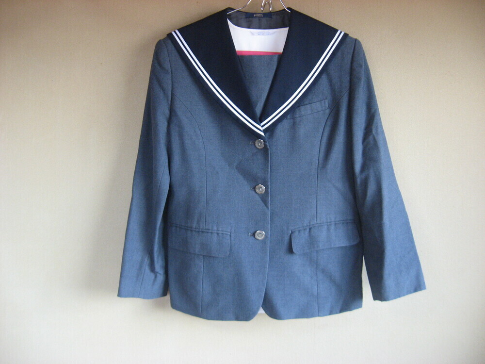 冬服サイズ セーラーブレザー L 肩幅44cm 着丈60cm セーラーカラーブラウス L スカート(アジャスター型ホックです)ウエスト69cm 丈48cm |