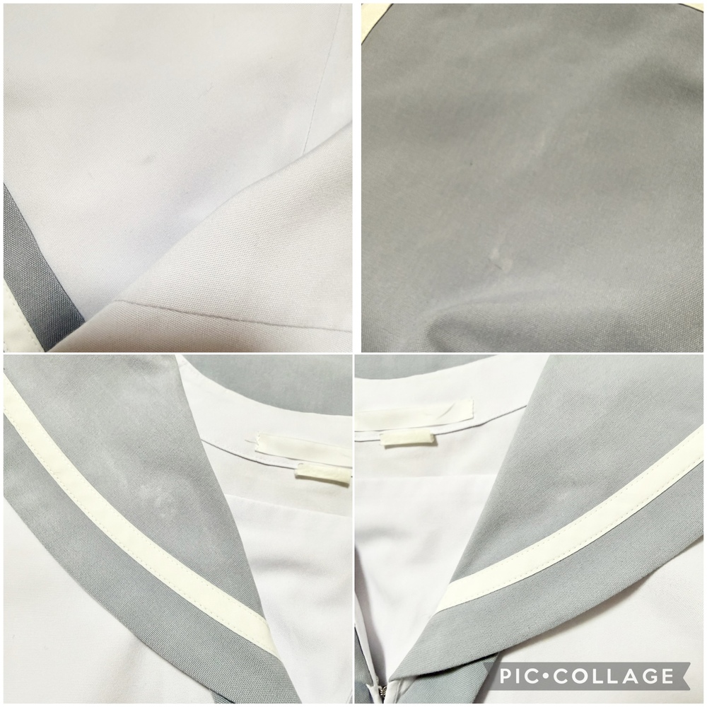 ※初めに※ こちらの商品に関しましては、直近3ヶ月以内に落札者都合によるキャンセルがある方の入札はご遠慮下さいm(_ _)m 新規の方は必ず購入意思の有無のコメントをお願い致します。 取引に不安がある方より入札があった場合、予告無く入札削除致しますのでご了承ください。 長くなり申し訳ございませんm(_ _)m 当方の仕事(不定休)の関係で入金確認に2、3日、発送に1週間くらいかかりますので、その点をご了承くださいm(_ _)m -----商品説明等----- 長崎県 明峰中学 夏服セーラー服 上着 グレーのセーラー服です。 大きいサイズですので、男性の方やマシュマロボディの方も可愛くご着用頂けるかと思います。 全て平置きでの採寸になります。 身幅は2倍でお考えください。 素人の採寸ですので、多少の誤差はお許しくださいm(_ _)m 【夏服セーラー】 着丈50cm 肩幅42cm 身幅53cm 袖丈22cm ホワイトボディにグレーの襟、カフスのセーラーです。 かぶりタイプ、サイドファスナーです。 左袖に明峰の刺繍あり。 袖やお腹あたりに薄い汚れあり。 首周り黄ばみあり。 襟に色落ちで白っぽくなってる箇所あり。 【ネクタイ】 指定のタイです。 スナップボタンで取り外し可能です。 襟と同じグレーです。 ※スカートもグレーですが、スカート無しでの出品となります。 発送 ・レターパックライト ・レターパックプラス ・ゆうパック60サイズ 落札頂きましたら、必ずご希望の発送方法を上記よりお選び頂き、メッセージをお願い致します。 ご連絡なき場合、ゆうパックでの発送となります。 ご検討よろしくお願い致します(*^^*) お願いm(_ _)m 落札頂きましたら、24時間以内に取引開始をお願い致します。 諸事情により郵便局(ゆうパック等)での発送しか出来ません。 お振込みは送料通知より銀行営業日3日以内にお願い致します。 |