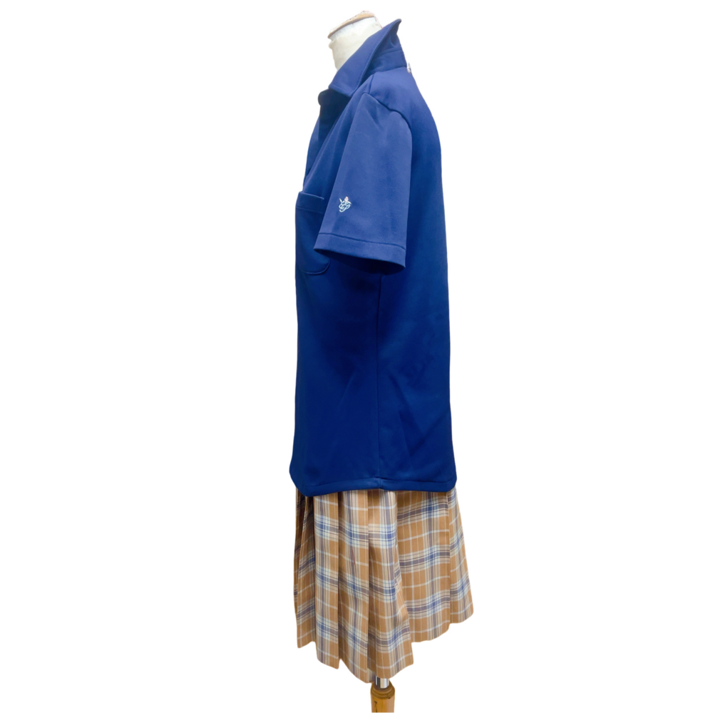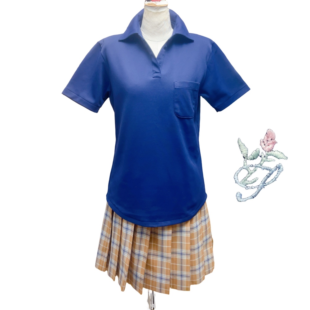 ご訪問頂き誠に有難う御座います。 ご入札前にお手数ですが必ず プロフィールをご一読下さいますよう 何卒お願いを申し上げます。 ご閲覧頂いていない場合のクレームは 受け付けておりませんので 何卒ご了承下さい。 以下発送品となります。 1. 象徴的なブルーのポロシャツ この制服の最大の特徴は、鮮やかなブルーのポロシャツです。 デザイン 一般的なシャツ(ブラウス)ではなく、ポロシャツを採用している点がユニークです。これは「活動しやすさ」を重視したもので、胸元には機能的なポケットが付いています。 素材: 通気性が良く、夏場でも快適に過ごせる鹿の子素材などが使われています。 2. キャメル系のチェックスカート ブルーのトップスに合わせるのは、キャメル(ベージュ系)をベースにしたチェック柄のプリーツスカートです。 配色: ブルーとキャメルというコントラストの強い組み合わせは、非常にモダンで都会的な印象を与えます。 スタイル: この配色バランスは一目で「品川女子」と分かるほど認知度が高く、受験生や在校生からも人気があります。 3. バラの刺繍(校章・モチーフ) 画像の右側に添えられているのは、学校の象徴であるバラモチーフです。 品川女子学院では、自立した女性の象徴としてバラを大切にしており、制服の細部や学校のエンブレムにもこの意匠が見られます。 単位(cm) |