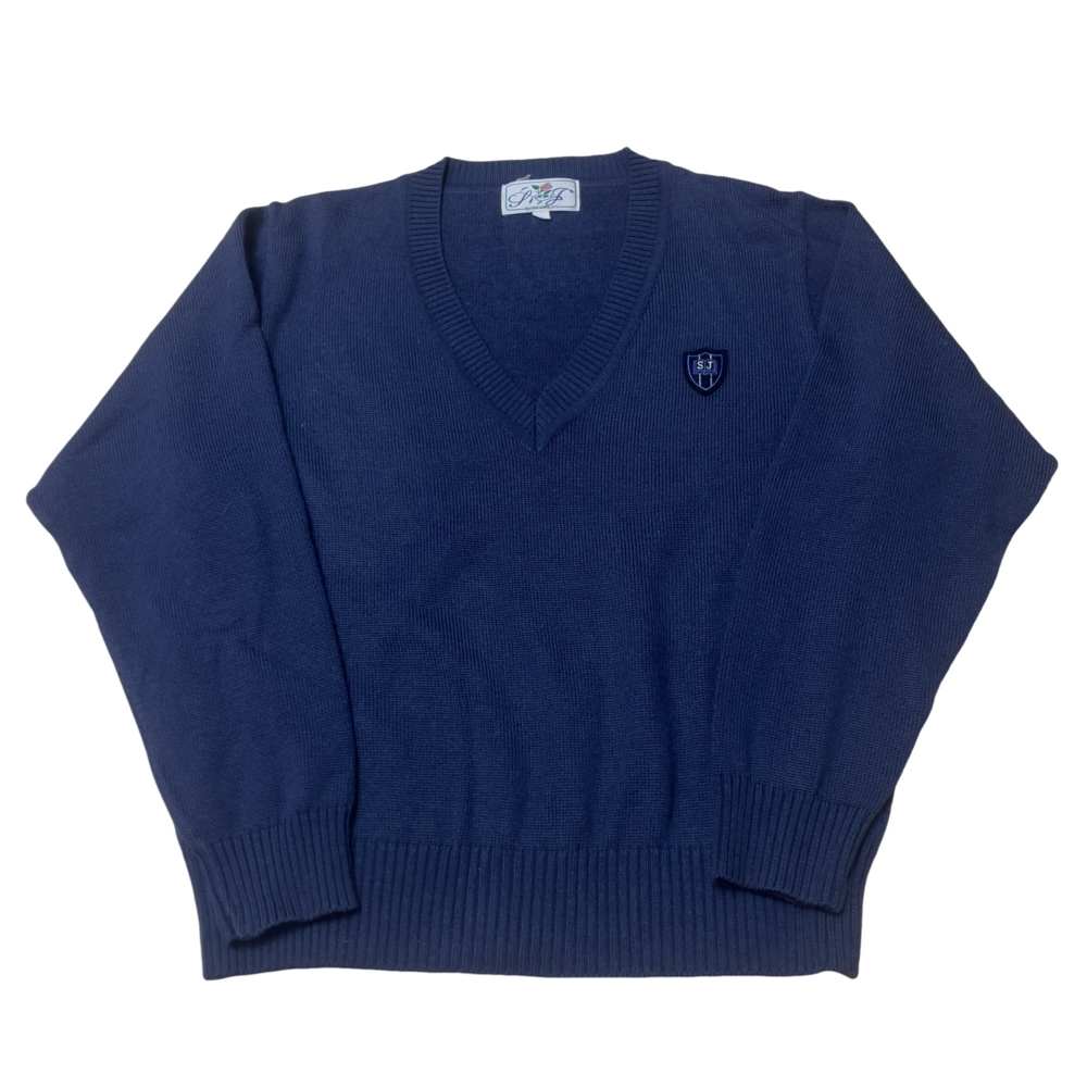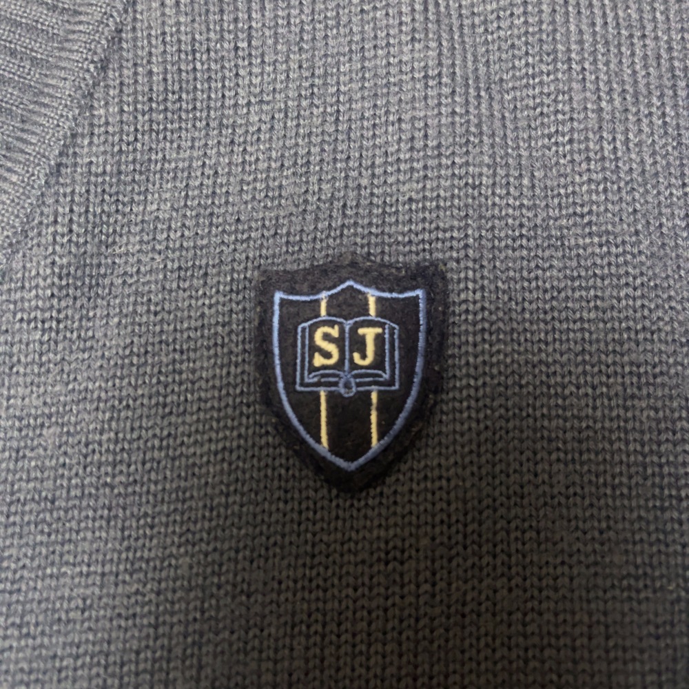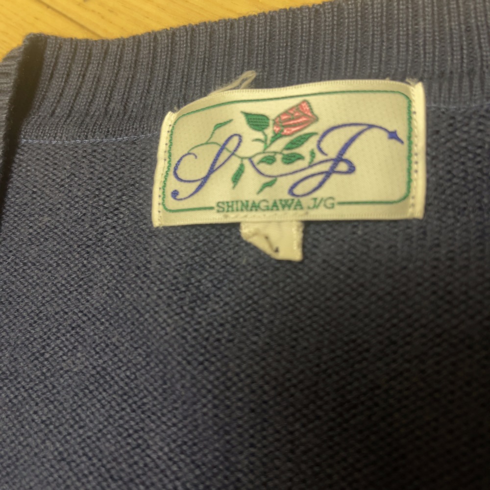 ご訪問頂き誠に有難う御座います。 ご入札前にお手数ですが必ず プロフィールをご一読下さいますよう 何卒お願いを申し上げます。 ご閲覧頂いていない場合のクレームは 受け付けておりませんので 何卒ご了承下さい。 以下発送品となります。 単位(cm) 品川女子学院の中等部・高等部で着用される指定セーターは、機能性とデザイン性を兼ね備えた、冬の制服スタイルに欠かせないアイテムです。 デザインと特徴 カラー 制服全体のトーンに合わせた、深く落ち着いたネイビー(紺色)が採用されています。 ネックライン 重ね着がしやすい深めのVネック仕様となっており、ブラウスやポロシャツの襟元がすっきりと美しく見えるデザインです。 左胸のエンブレム 左胸には、学校のイニシャルであるSJを配した盾型のワッペンざ施されています。このエンブレムは、ソックスに見られる刺繍のデザインとも共通しており、統一感のある着こなしを演出します。 ディテール 首元、袖口、裾にはしっかりとしたリブ編みが施されており、繰り返しの着用でも型崩れしにくい工夫が見られます。 |