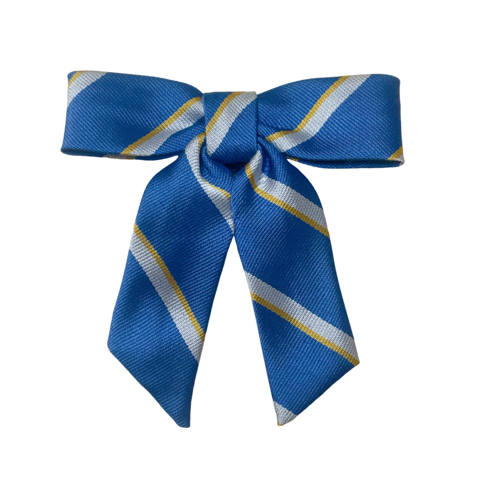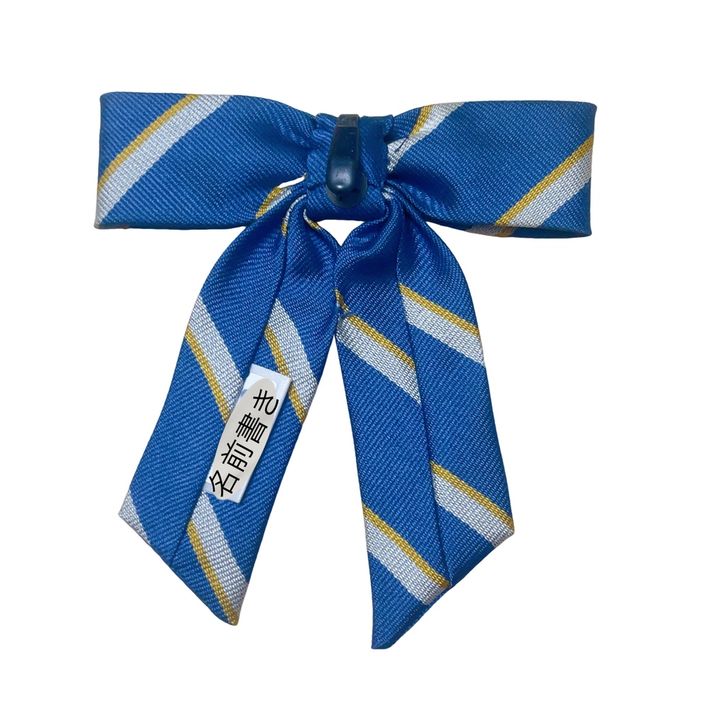ご訪問頂き誠に有難う御座います。 ご入札前にお手数ですが必ず プロフィールをご一読下さいますよう 何卒お願いを申し上げます。 ご閲覧頂いていない場合のクレームは 受け付けておりませんので 何卒ご了承下さい。 以下発送品となります。 単位(cm) デザインとカラーの特徴 ベースカラー: 学校のシンボルカラーである、鮮やかで深みのあるブルーが採用されています。 ストライプ柄: ブルーの地に、イエローとホワイトのストライプが斜めに入ったレジメンタルタイ調のデザインです。 フォルム: 形が整えられた作り付けタイプのリボンで、中央の結び目から左右の羽根と垂れが美しく広がる立体的なシルエットが特徴です。