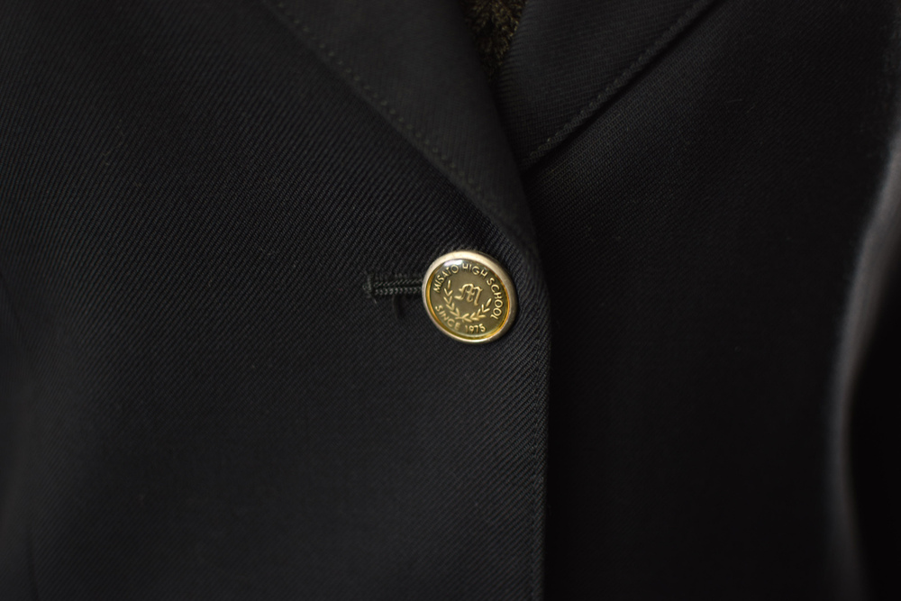 状態は実際に使用されていたものですのでブレザーの第三ボタンがありません。セーター両袖先に縫製ほつれ、シミ・黄ばみ着用感があります。