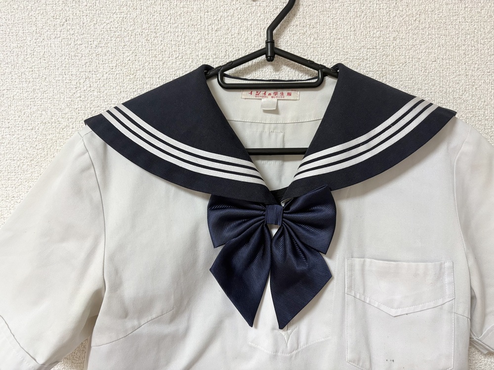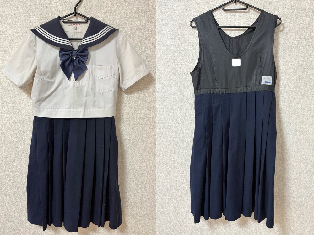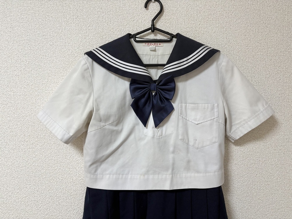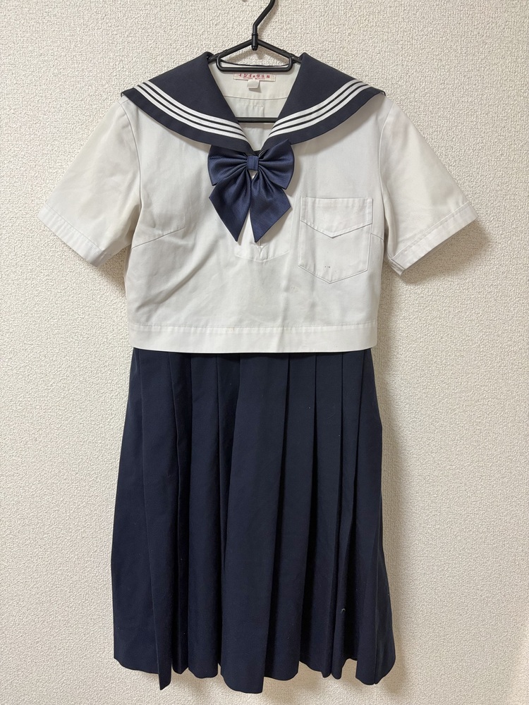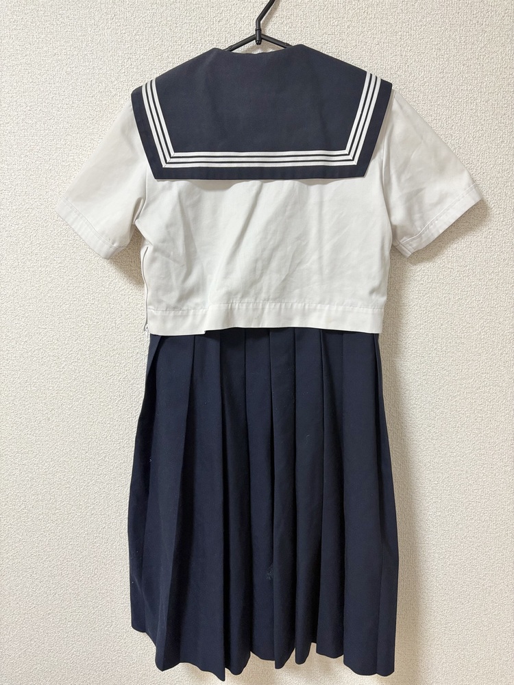 ◇◆出品内容◇◆ ・セーラー(胸スナップボタンの下一個紛失/画像参照) 肩幅40 身幅46 着丈39 袖丈20 ・他校ジャンパースカート 身幅44 ウエスト78 総丈95 ・指定外リボン 以上3点です。 ※素人採寸のため、多少の誤差はご了承ください。 ◇◆状態◇◆