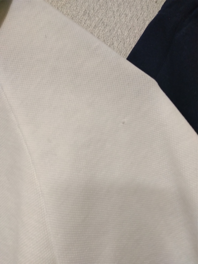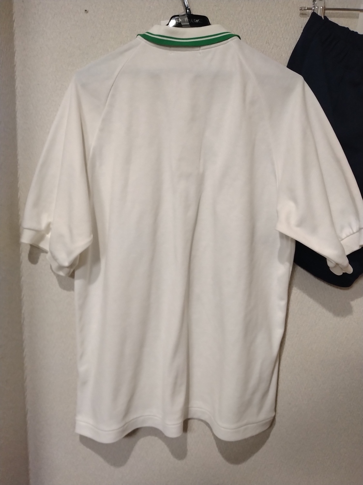 ポロシャツは襟黄ばみと汚れあり、袖口にも若干黄ばみあり、全体的に使用感あり、シワあり、引っ掛け部分あり、毛玉ある部分あり、刺繍を取った跡あり。 短パンは全体的使用感あり、若干裏表に毛玉あり、紐傷みあり、刺繍を取った跡、タグを切った跡あり。 数年にわたり日常生活で使用していた使用感です。 自宅で洗濯したのですが、汚れは取りきれませんでした。