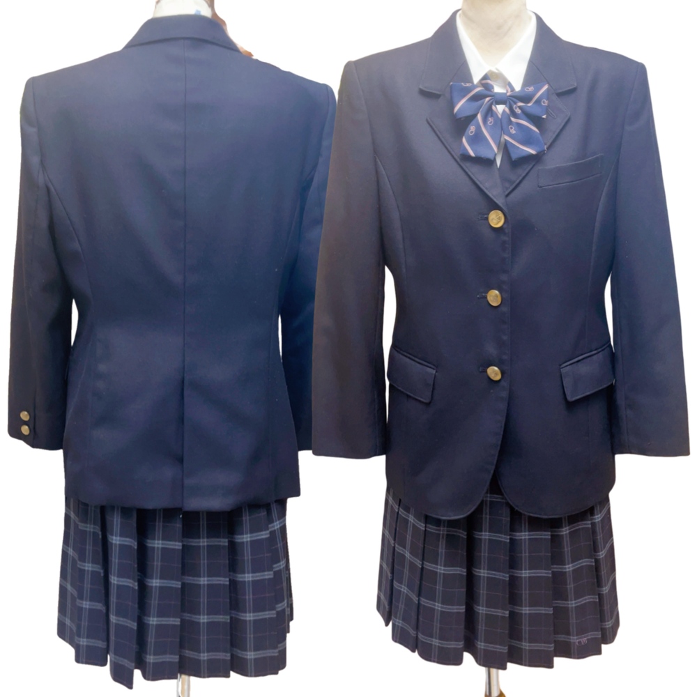 ご訪問頂き誠に有難う御座います。 ご入札前にお手数ですが必ず プロフィールをご一読下さいますよう 何卒お願いを申し上げます。 ご閲覧頂いていない場合のクレームは 受け付けておりませんので 何卒ご了承下さい。 以下発送品となります。 隅田川高校の制服は、落ち着いたネイビーカラーを基調とした清楚で知的なデザインが特徴です。 夏服は白いブラウスにネイビーのチェック柄スカートを合わせ、爽やかで軽やかな印象を演出します。胸元のリボンにはさりげない柄が入り、上品なアクセントになっています。 冬服はネイビーのブレザーに金色ボタンを採用し、落ち着きと格式を感じさせるスタイル。夏服と同じチェック柄スカートとリボンを組み合わせることで、季節を通して統一感のある美しい制服スタイルが完成します。 シンプルながらも洗練されたデザインは、学生らしい清潔感と知的な雰囲気を引き立てる隅田川高校の象徴的な制服です。 単位(cm) |