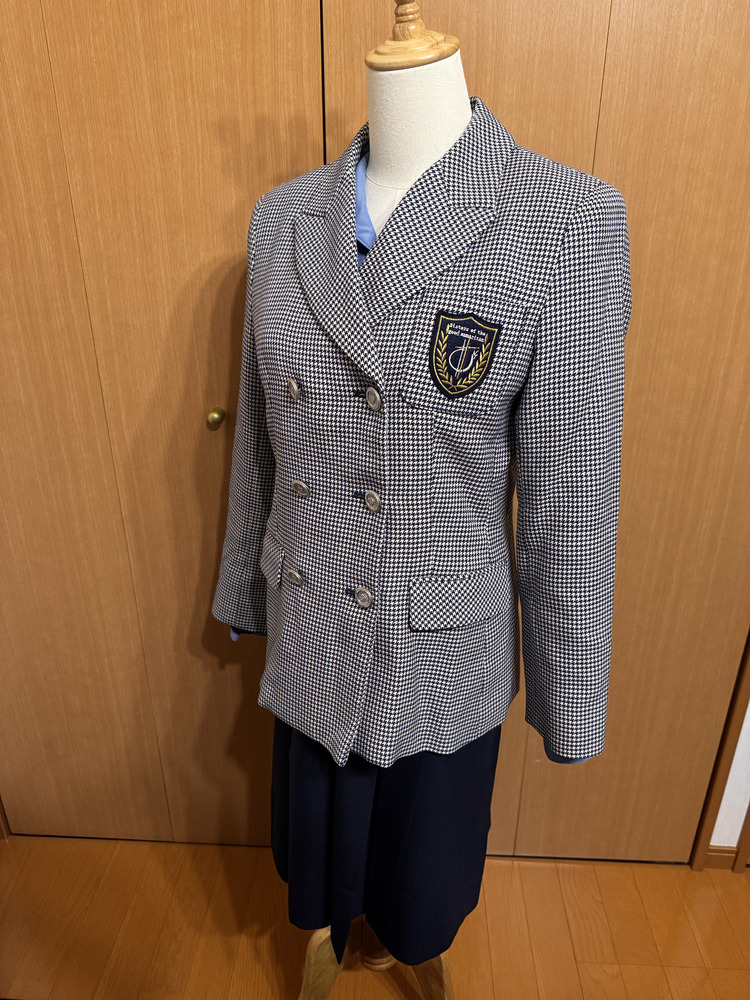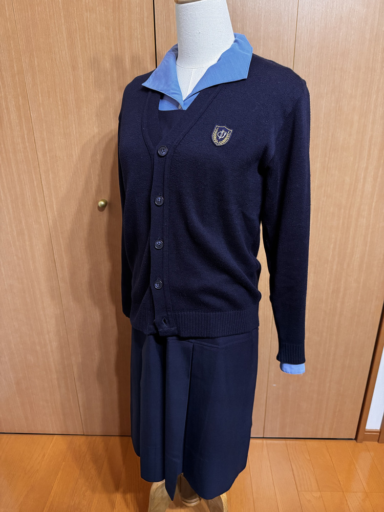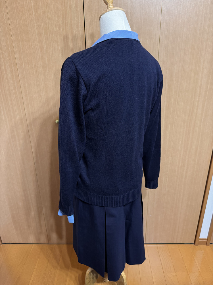 長崎県の中高一貫女子校である長崎聖和女子学院高等学校の冬服のセットです。 ブラウスの袖に若干のスレ感はありますが、全体の状態としてはきれいだと思います。 ブレザー[毛100(表)ポリ100(裏)] サイズ「L」表記 肩幅 40 袖丈 58 丈 63 ジャンパースカート[毛70ポリ30(表)ポリ100(裏)] サイズ「L94」表記 ウエスト 43 総丈 93 カーディガン[アクリル70毛30] サイズ「M」表記 肩幅 39 袖丈 56 丈 56 長袖ブラウス[ポリ90綿10] サイズ「L」表記 肩幅 43 袖丈 58 丈 62 指定ベルト 長さ 92 ※サイズはすべてcm、素人採寸のため誤差ありますご了承ください。 |