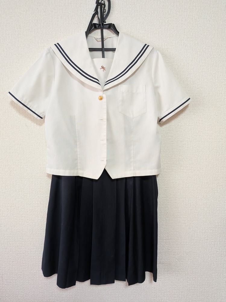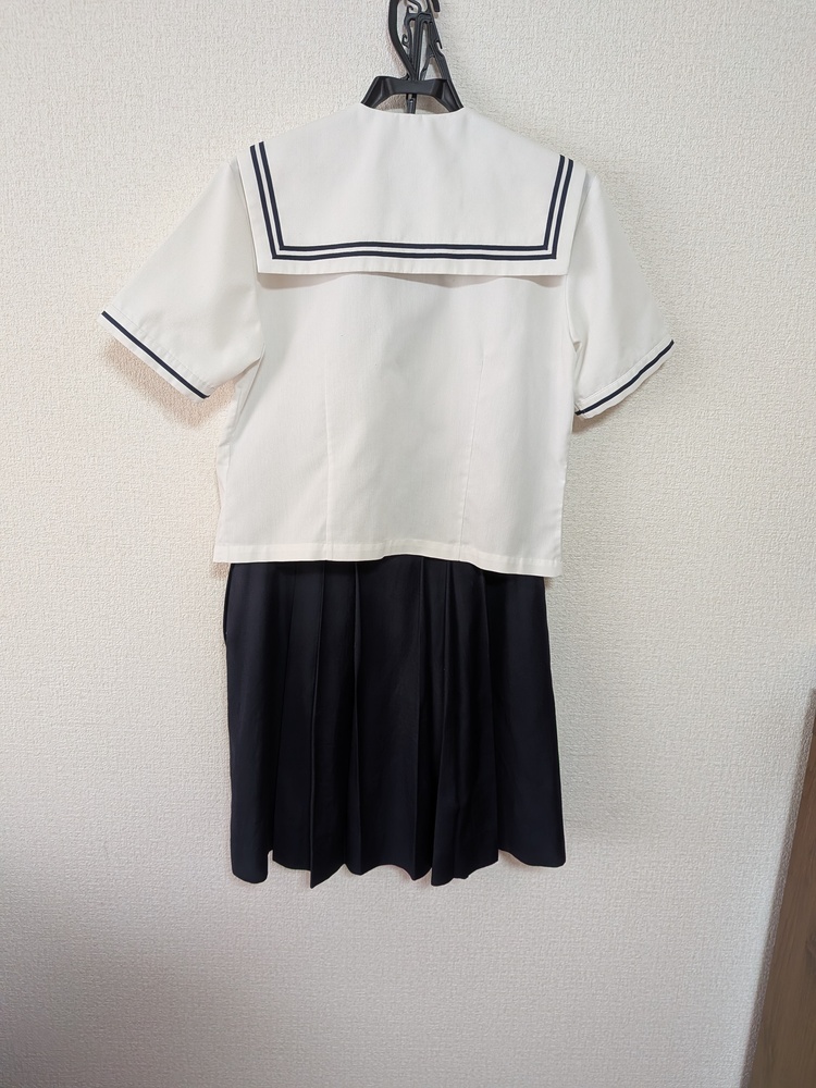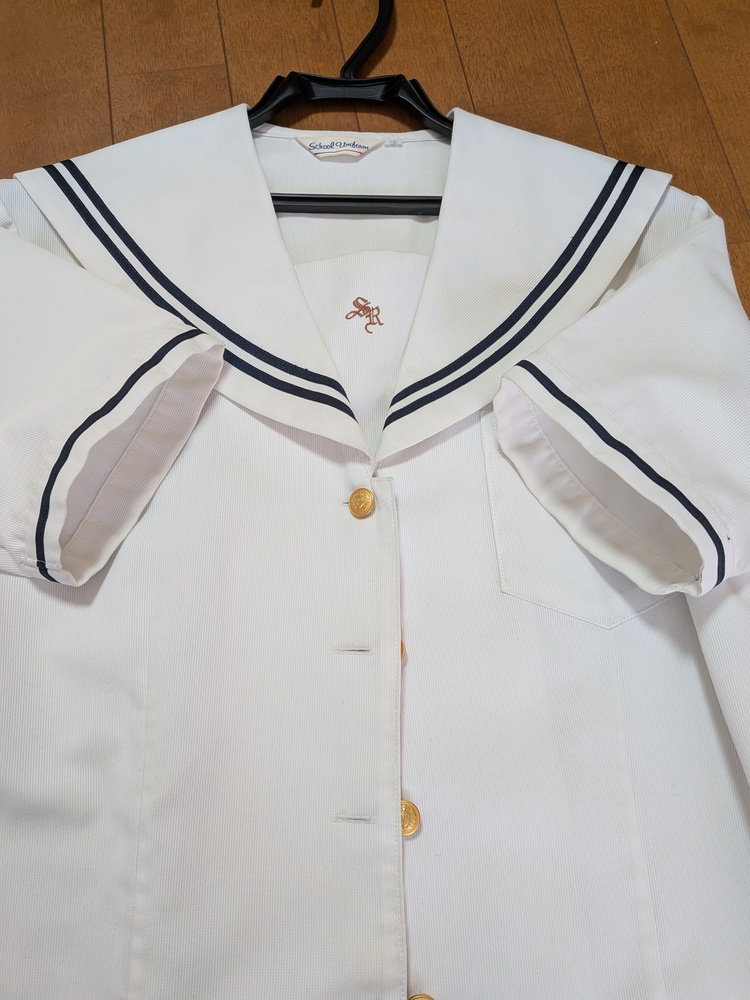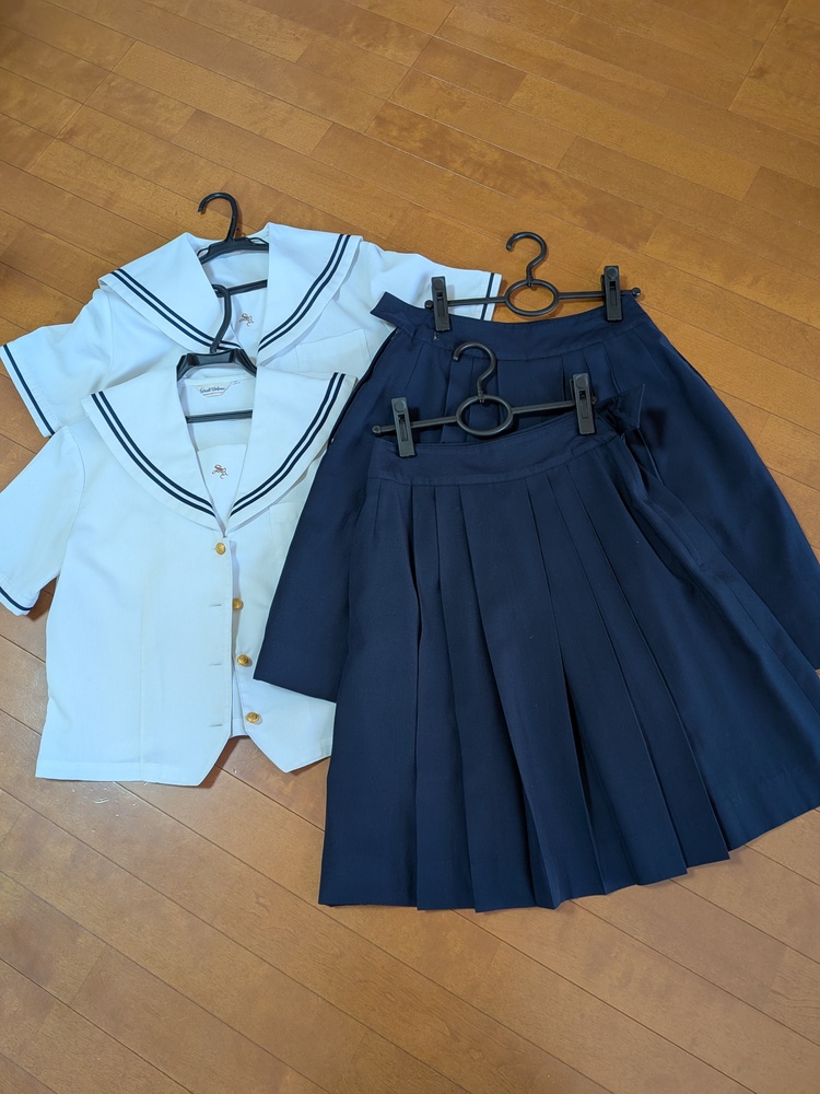 愛知県 私立聖霊中学・高校 夏服セット 1.夏用セーラー服Lサイズ 2点 2.夏用スカート W63L57 2点 3.半そでブラウスLサイズ 1点 4.夏用カーディガン Lサイズ 1点 全て自宅で洗濯済みですが、夏用スカートが1点うすいシミがあります。 スカートはクリーニングに出されるとプリーツがきれいに復活するかと思います。ウエスト部分はホックの位置を縫い変えることで多少調整できます。 ペットなし、柔軟剤不使用です。 その他、目立つ汚れやほつれ等はないと思いますが、素人の検品です。細かいところが気にならない方におすすめです。