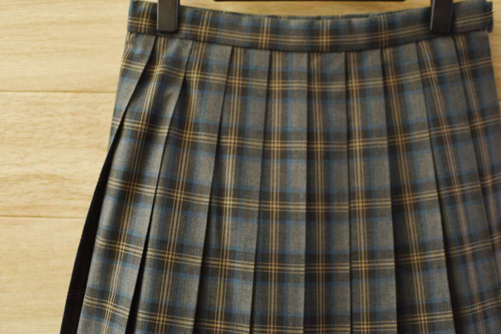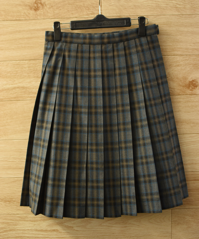 • c■美品■カンコー女子学生制服 人気チェック柄 夏スカートW66L51■グレー・黄など 不明
