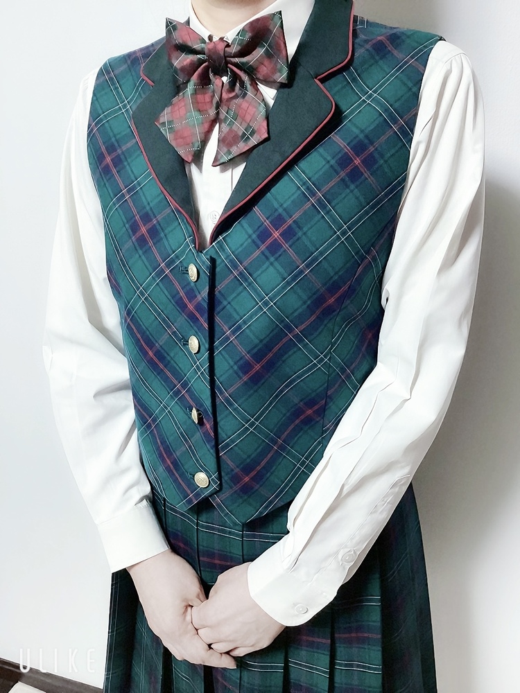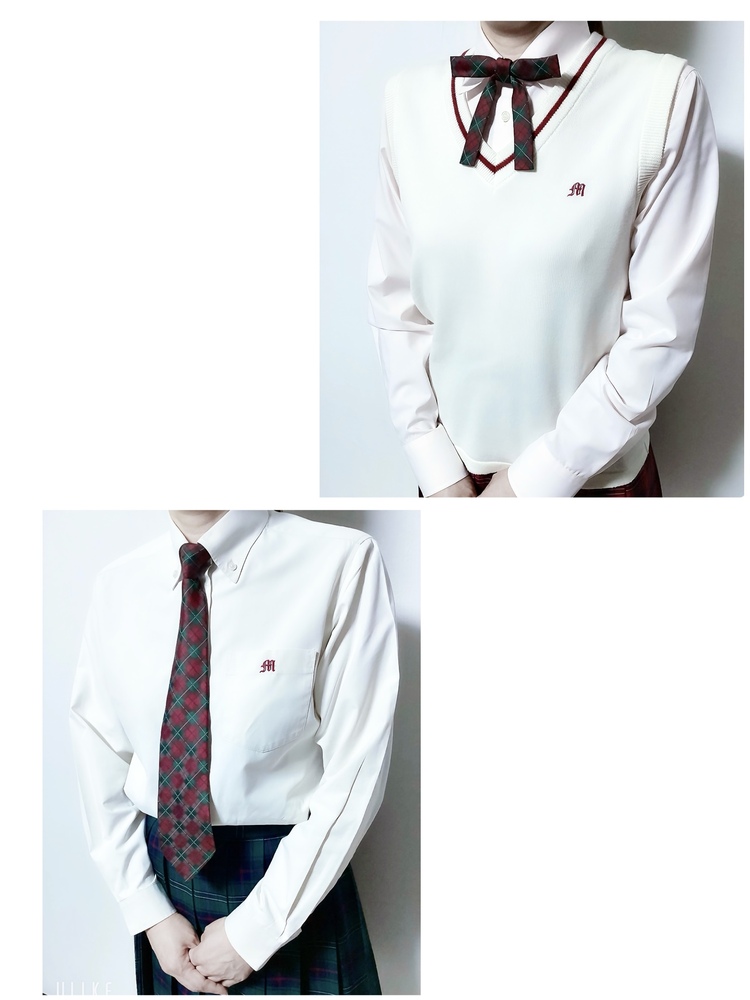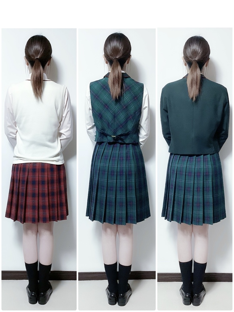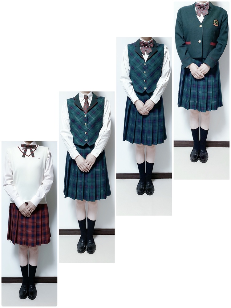 | 一般的な生徒の着用方法はベストを必ず着てのベストの襟を外に出してブレザーです😁 |