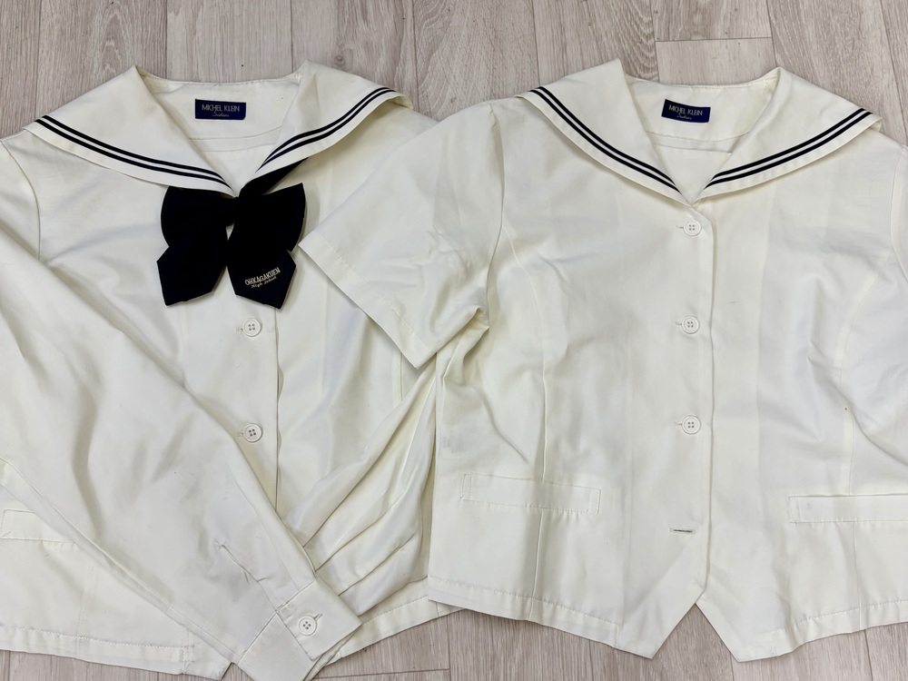 桜花学園高校の人気の高い制服のフルセット。 リボンは2種類付いています。 スカートも3枚付きます。 冬セーラー服 LR 合服 LT 夏セーラー服 LT 冬、夏2枚スカート ベルト芯の端から端まで平置きで37センチ 丈66センチ リボン二個 今年度卒業生のお品です。 3年間着用していますが比較的美品です。 柔軟剤の匂い多少あります。畳シワあります。現状のお渡しになります。 |
