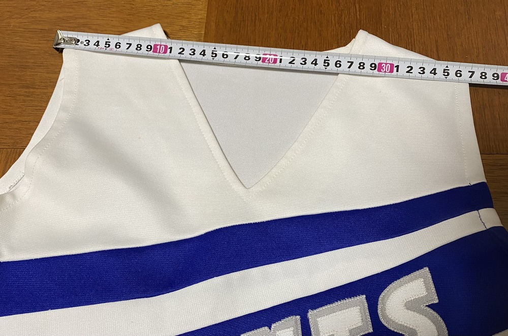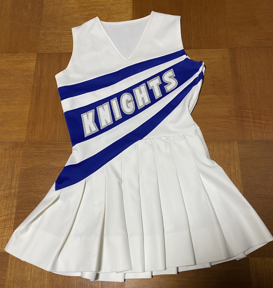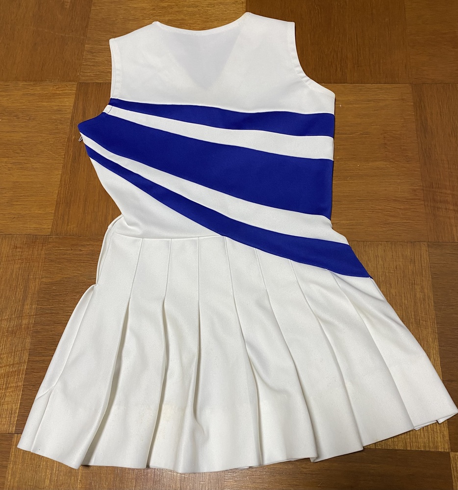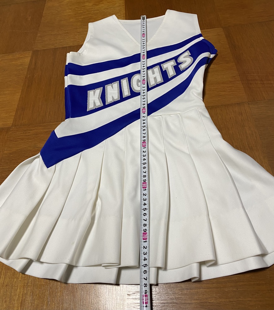 お門違いだったらすいませんm(*_ _)m 恐らく海外のチア衣装のワンピース型とスパッツセットです。 作りは厚手の生地でしっかりしています。 サイズは写真参照でメジャー計測はアバウトです。 ノークレームノーリターンでお願いします。m(*_ _)m |