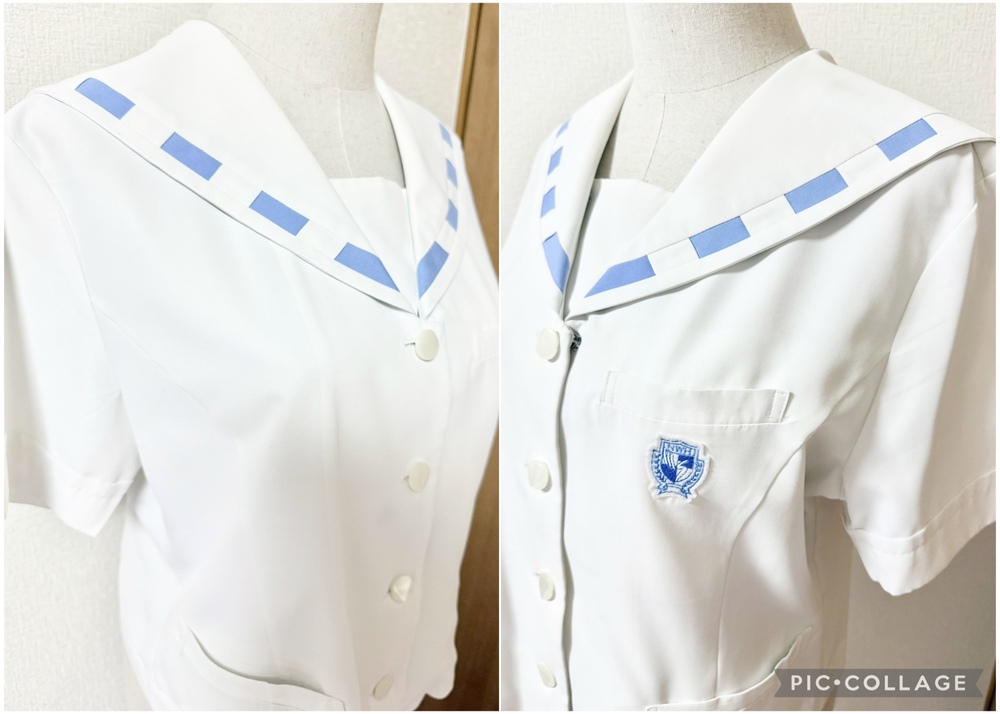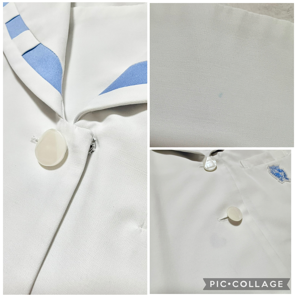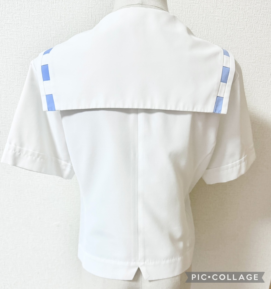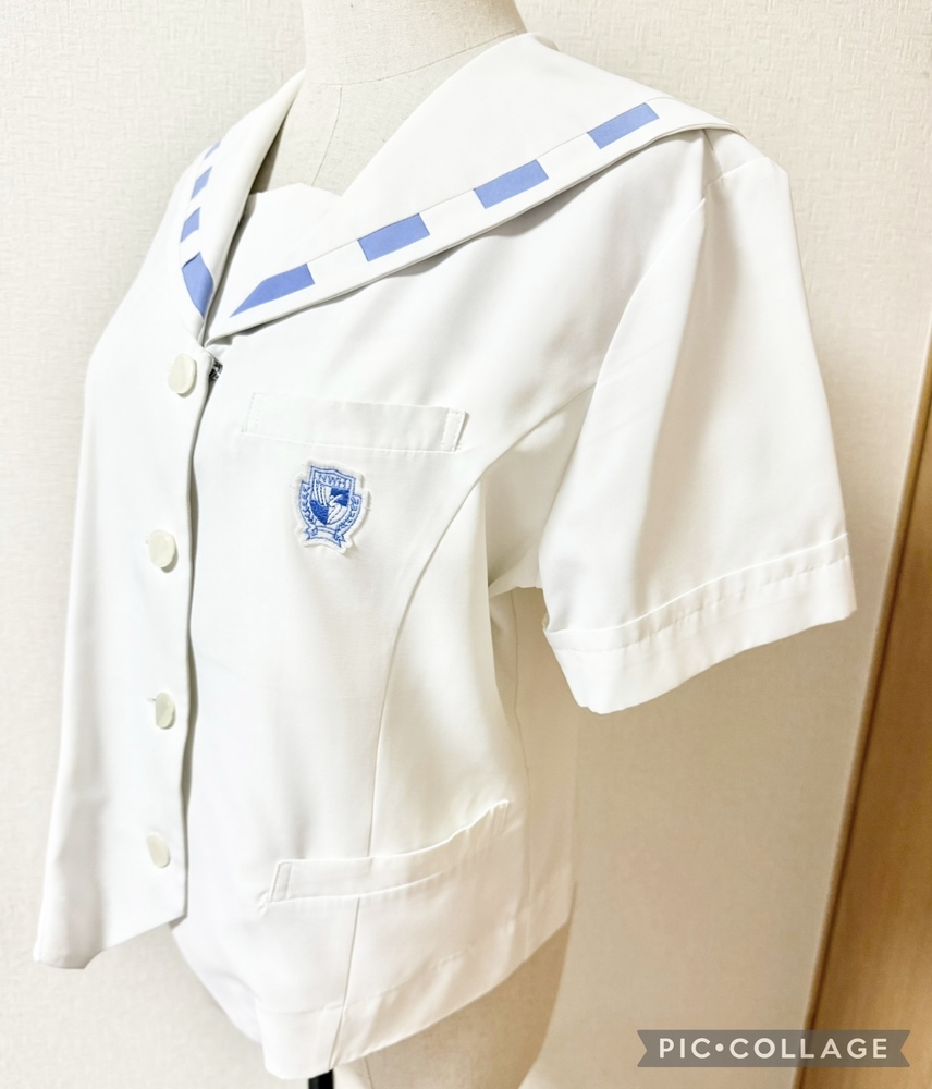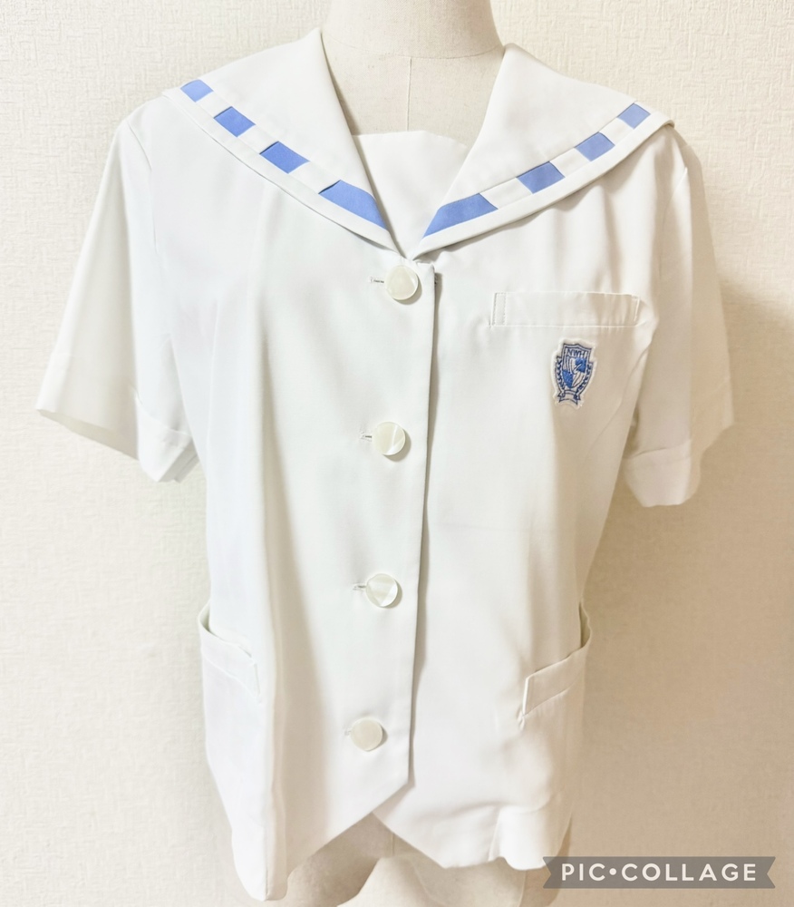 ※初めに※ こちらの商品に関しましては、直近3ヶ月以内に落札者都合によるキャンセルがある方の入札はご遠慮下さいm(_ _)m 新規の方は必ず購入意思の有無のコメントをお願い致します。 取引に不安がある方より入札があった場合、予告無く入札削除致しますのでご了承ください。 長くなり申し訳ございませんm(_ _)m 当方の仕事(不定休)の関係で入金確認に2、3日、発送に1週間くらいかかりますので、その点をご了承くださいm(_ _)m -----商品説明等----- 長崎県 長崎女子高校 夏服上着単品 人気の長崎女子高校の夏のセーラー上着のみです。 先日卒業したばかりの方よりお預かり致しました。 ※別出品中の夏服一式と同じオーナーさまよりお預かりした制服です。 全て平置きでの採寸になります。 身幅、ウエストはかける2倍でお考えください。 素人の採寸ですので、多少の誤差はお許しくださいm(_ _)m 【夏服セーラーブラウス】 L 着丈48cm 肩幅41cm 身幅52cm 袖丈21cm ホワイトの前開きボタンタイプのセーラーブラウスです。 襟の水色の点線が珍しくて可愛いデザインです。 胸ポケットにワッペンあり。 さらさらとした気持ちが良い生地です。 ワッペンに毛玉あり。 一番上のボタンのところの角に汚れあり。 襟後ろに水色の点汚れあり。 胸真ん中に2cmくらいの油シミのようなものあり。 記名あり。 品質表示タグの文字がかなり薄くなっています。 ポリエステル80% 綿% ※元からリボンなど無いデザインです。 昨年11月末に業者にてクリーニング済みらしく、そのまま保管、ご着用頂けます。 【発送】 ・ゆうパック60サイズ •レターパックライト ・レターパックプラス 落札頂きましたら、必ずご希望の発送方法を上記よりお選び頂き、メッセージをお願い致します。 ご連絡なき場合、ゆうパックでの発送となります。