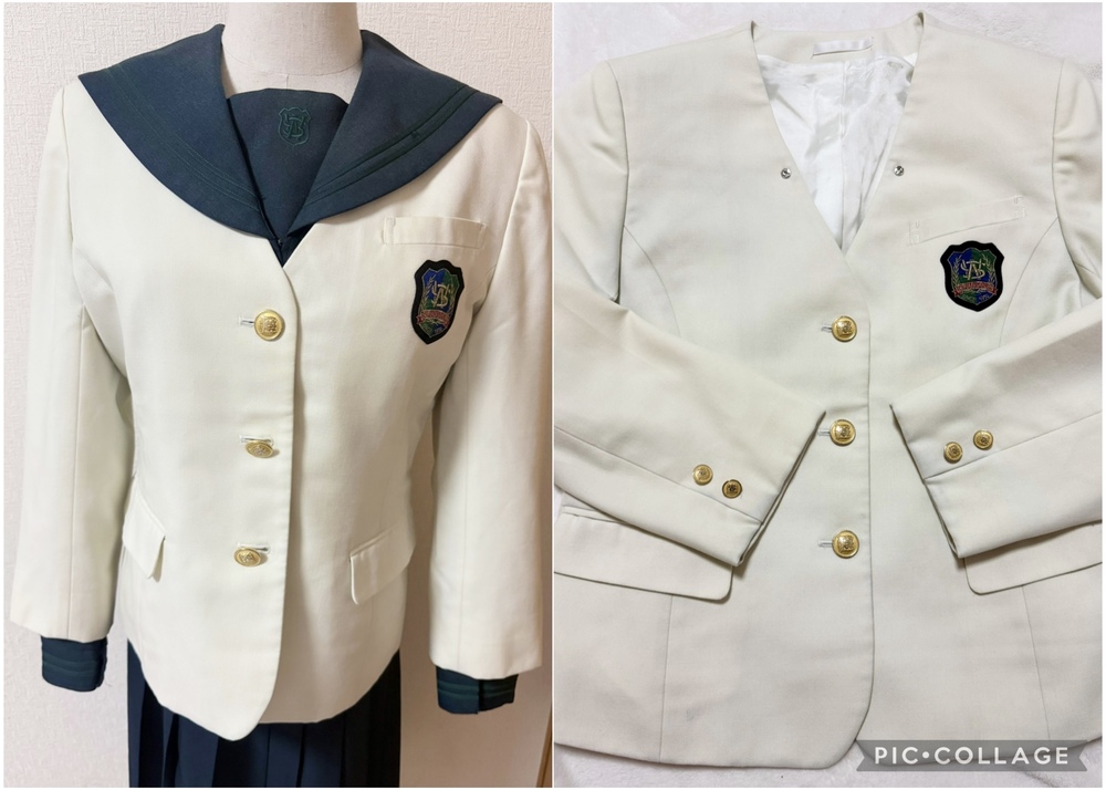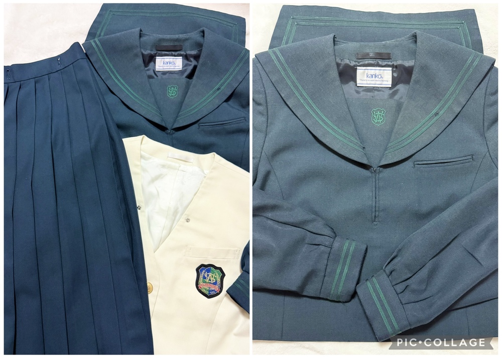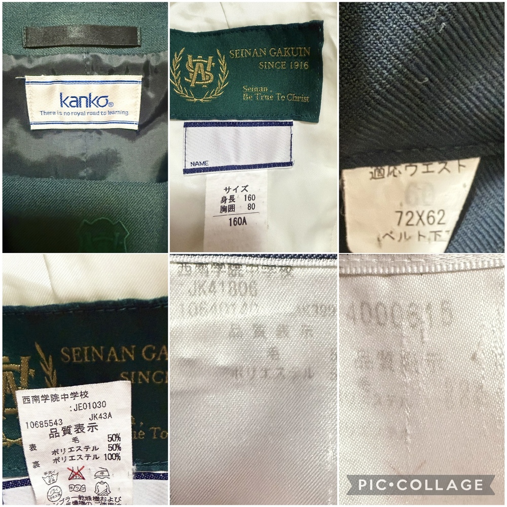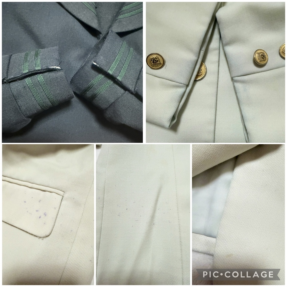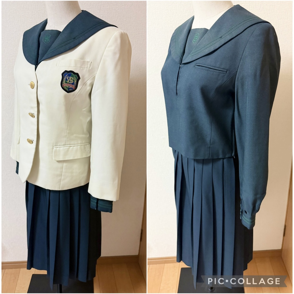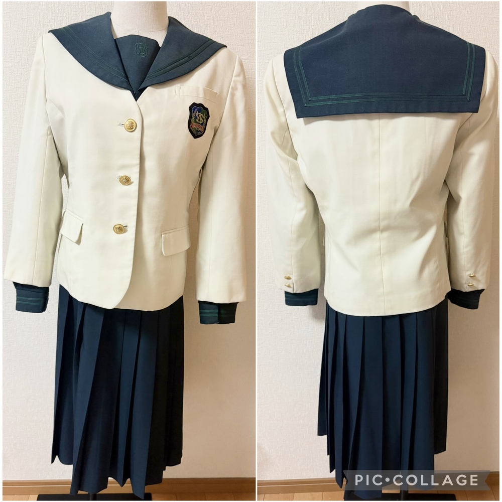※初めに※ こちらの商品に関しましては、直近3ヶ月以内に落札者都合によるキャンセルがある方の入札はご遠慮下さいm(_ _)m 新規の方は必ず購入意思の有無のコメントをお願い致します。 取引に不安がある方より入札があった場合、予告無く入札削除致しますのでご了承ください。 長くなり申し訳ございませんm(_ _)m 当方の仕事(不定休)の関係で入金確認に2、3日、発送に1週間くらいかかりますので、その点をご了承くださいm(_ _)m -----商品説明等----- 福岡県 西南学院中学校 冬服 グリーンセーラー上下にクリーム色のブレザーが可愛い制服です。 こちら当方コレクションで保管しておりました。 全て平置きでの採寸になります。 身幅、ウエストは2倍でお考えください。 素人の採寸ですので、多少の誤差はお許しくださいm(_ _)m 【ブレザー】 160A 着丈54cm 肩幅40.5cm 身幅50.5cm 袖丈の52cm クリーム色のイートンブレザーです。 胸ポケットにワッペン付きです。 こちら着用感強いです。 全体的に薄汚れあり。 袖口黒くなっています。 前後裾黒い汚れあり。 左ポケット紫のペン跡あり。 左後ろにも紫のペン跡あり。 内側裾にもペン跡や汚れあります。 ペン跡汚れは目立ちます。 左後ろ脇腹辺りに大きめ黄色いシミあり。 ホワイトのブレザーな為、他にも見落としている汚れがある場合があります。 【冬服セーラー】 着丈44cm 肩幅38.5cm 身幅47cm 袖丈59cm 濃いグリーンのセーラー服です。 グリーンの2本ライン、胸当てに刺繍あり。 かぶりタイプ、サイドファスナーです。 こちらおそらく旧タイプかなと思います。 ネクタイを紛失してしまいました。 襟にピンを付けるための穴あり。 袖口目立つスレあり。 記名塗り潰しあり。 着用に困る難はありません。 【冬服スカート】 ウエスト35cm(アジャスターなし) 着丈65cm(ベルト含む) タグにはウエスト72、丈62と記載あり。 濃いグリーンのチェックスカートです。 着用感はありますが、特に気になる様な難はありませんが、インナーベストがありません。 記名あり。 ※こちら訳ありで手持ちのを合わせているため、オーナーさまがそれぞれ異なります。 上下よく見ると色が異なります。 昨年11月末に業者クリーニング済みの為、そのままご着用、保管頂けます。 【発送】 ・ゆうパック80サイズ ※ヤマトや佐川などの発送方法をご希望の方の入札はご遠慮ください。 諸事情により対応が出来ません。 もしご納得頂けない方が落札されました際には、話し合いの末落札者都合によるキャンセルとさせて頂きますのでご了承くださいm(__)m ※終了日当日の返答は出来かねますのでご了承下さい。 ご検討よろしくお願い致します(*^^*) お願いm(_ _)m 落札頂きましたら、24時間以内に取引開始をお願い致します。 諸事情により郵便局(ゆうパック等)での発送中心となります。 お振込みは送料通知より銀行営業日3日以内にお願い致します。 |