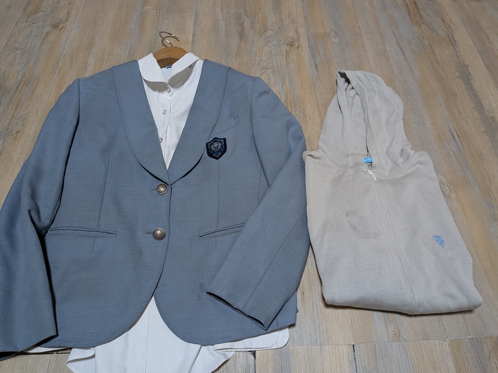 アースミュージック&カンコー ブレザー 7R ややシミあり 長袖ブラウス 使用感あり ニットジップパーカー 丈55 肩幅45 脇下身幅48 脇下〜袖先47 使用感あり くすみ汚れあり |