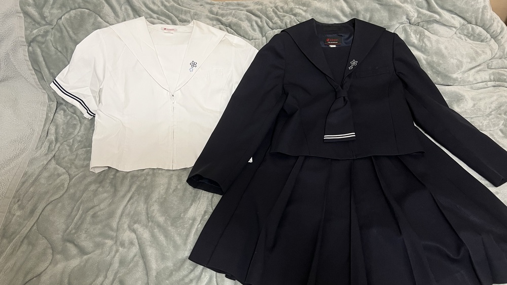 大安寺高校の制服セットです。 セーラージャケット 160くらい 丈48 肩幅38 脇下身幅44 脇下袖先40 半袖セーラーブラウス 丈50 肩幅40 脇下身幅48 スカート w61/丈58 状態良く、綺麗だと思います。 |