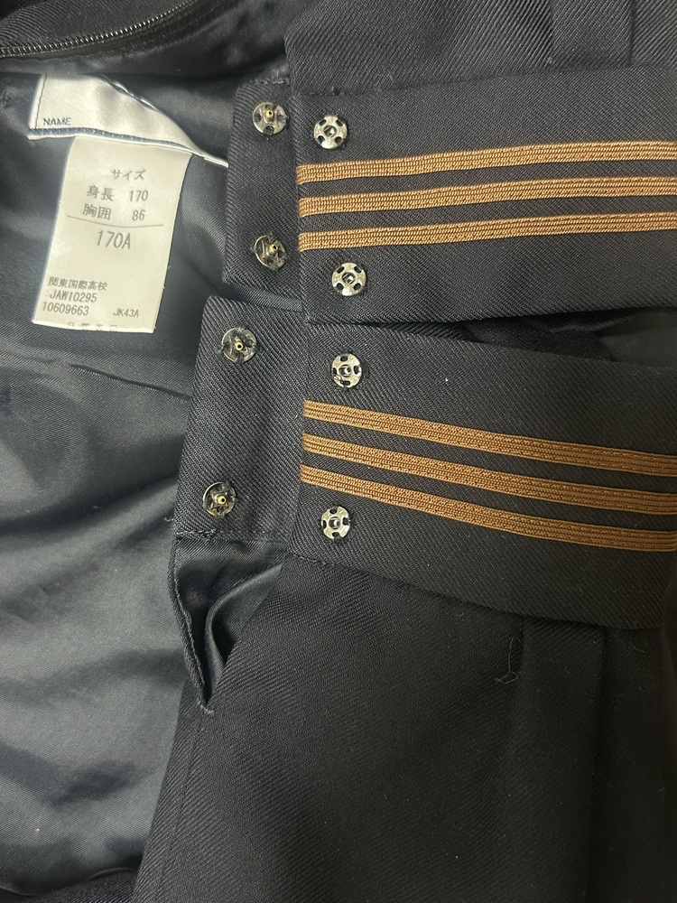 関東国際高等学校 現行制服です。袖のワンポイントのマークをご覧ください。 冬服、夏服、冬スカート、指定スカーフ、校章、指定靴下、指定紺色セーターの指定品7点セットです。 かなり大きめのサイズです。 夏服は裾に黄ばみがあります。 スカーフは折れなど使用感あり。 夏スカートはありません。 ご理解のある方のみ入札して下さい。 ブランド:hers heart 冬セーラー:170A 肩幅44cm 身幅48cm 着丈46cm 袖丈57cm 夏セーラー:170A 肩幅41cm 身幅44cm 着丈46cm 冬スカート:ウェスト81cm ベルト下丈51cm 指定スカーフ 校章 指定靴下 指定紺色セーター:LLサイズ ・オークション終了後24時間以内のご連絡(取引開始)、送料連絡後金融機関の3営業日以内のご入金、をご承諾いただける方のみご検討下さいますようお願いします。 ・ノークレーム、ノーリターン、ノーキャンセルでお願い致します。 ・評価0の方は必ず落札することをお約束して下さい。評価0未満の方は入札を拒否させていただきます。 |