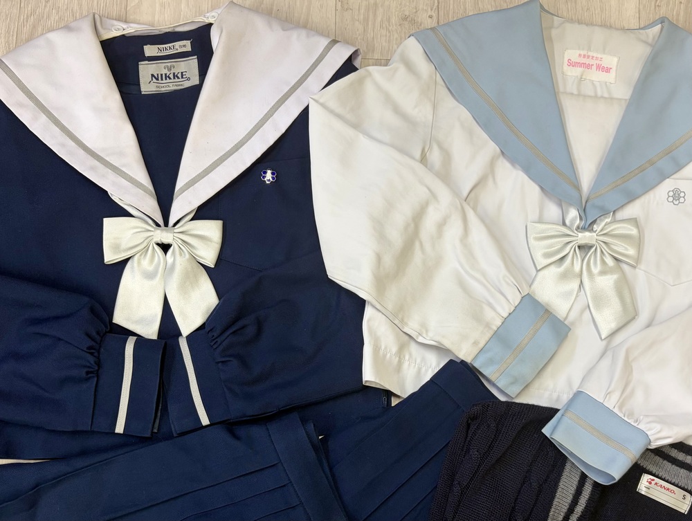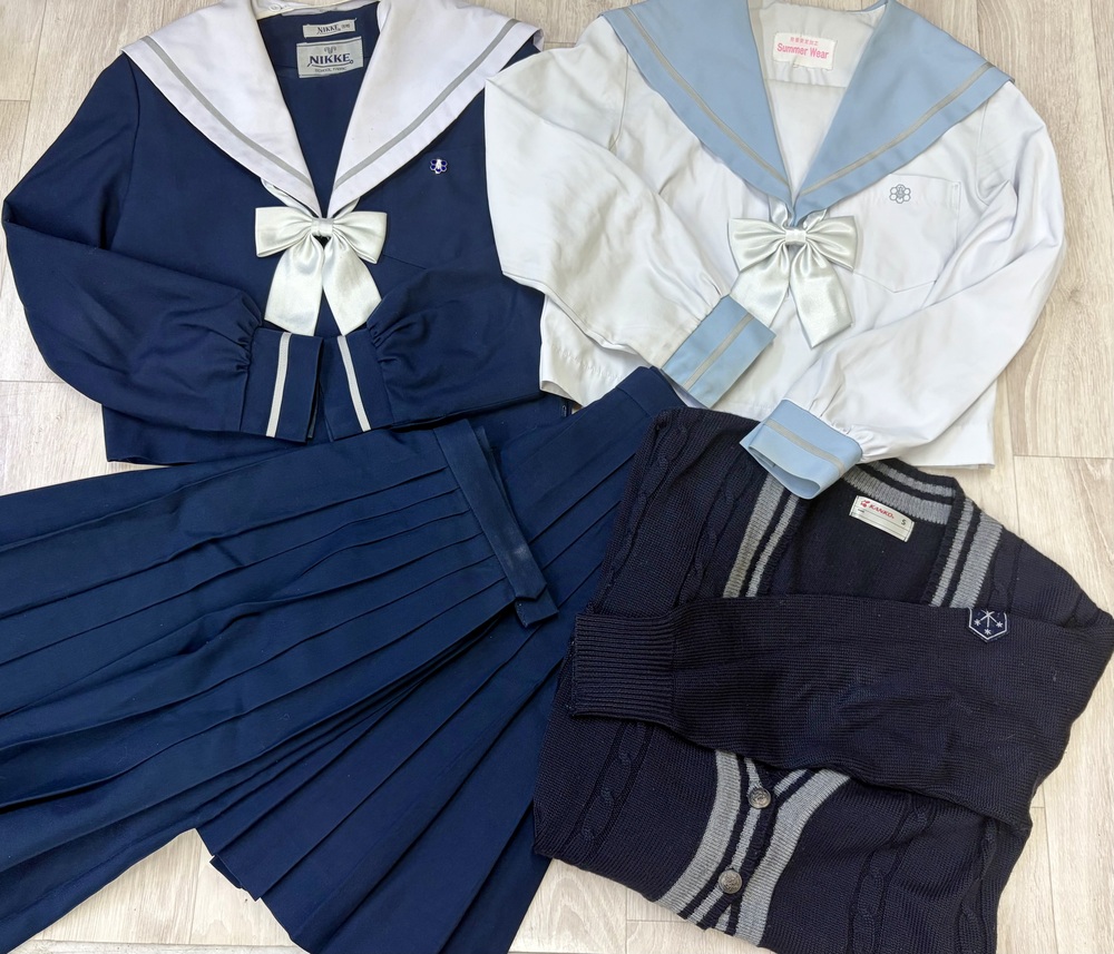 西春高校の冬、合服上下制服セットです。豪華なセットです。 超貴重校章付き。ほぼ出回りません。 昨年度より制服が変更になり、ブレザーになりましたのでコレクションとしてもオススメです。 リボンは2個つきます。1つ新品 替えエリもつきます。 カーディガン付き。 冬セーラー服 M相当 合服 M相当 カーディガン S 冬、夏スカート ベルト芯の端から端まで平置きで33センチ アジャスター付き 丈48センチ 替えエリ リボン2個 ※3年間着用のため使用感はありますが比較的綺麗な状態です。 畳シワなどご了承下さい。 |